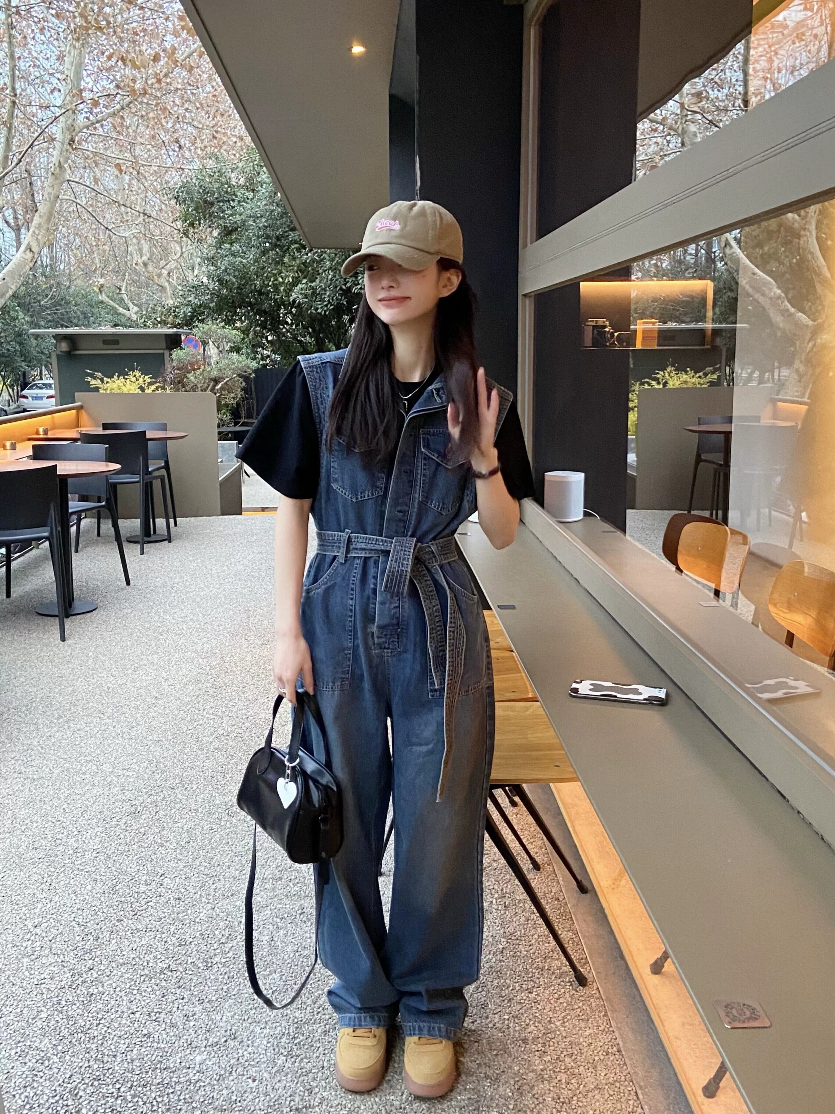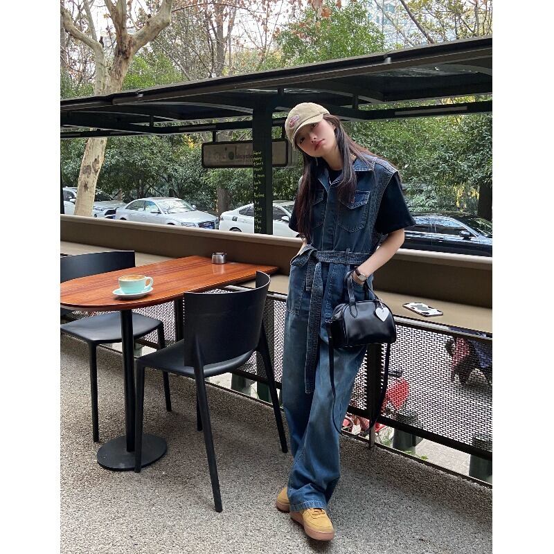アメリカンツーリングベストジャンプスーツ女性の夏2023新しいレトロハイウエストストレートワイドレッグパンツズボン ハイウェスト サマー 夏物 ワイドパンツ 0921970433904407