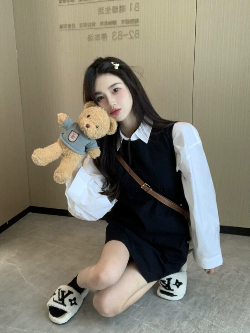 デザインセンス黒ノースリーブサスペンダードレス女性の夏の2023新しいオールマッチルーズスリムスカート潮 ブラック サマー 夏物 0921944983349385