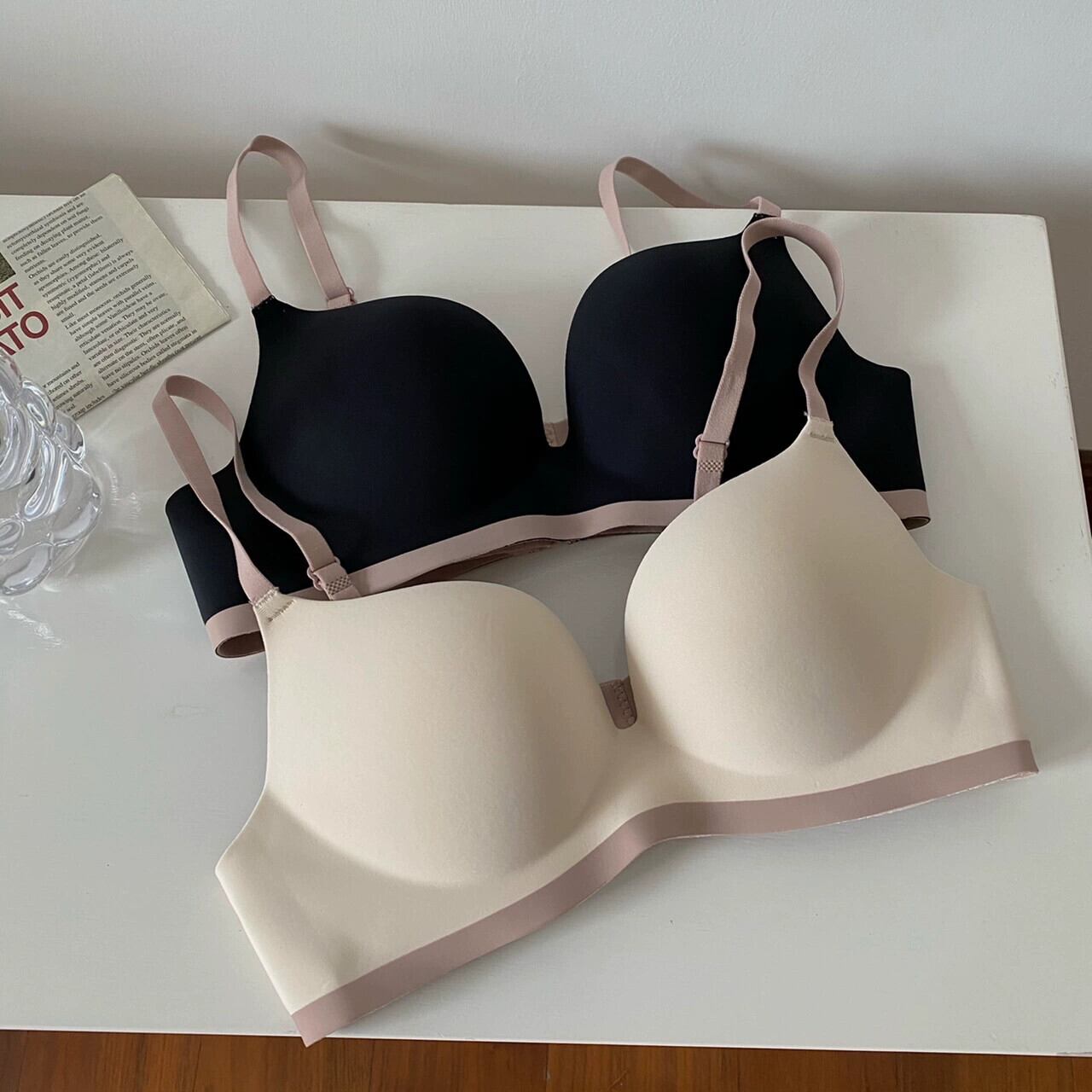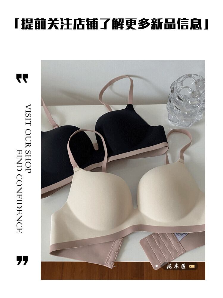 ネットレッドオールマッチコントラストカラーシームレスブラジャー婦人服2023年夏新しい小さな胸は胸の下着を閉じる鋼リングなしで集められました サマー 夏物 指輪 092198322724408