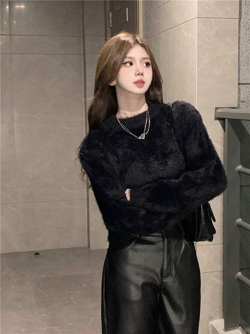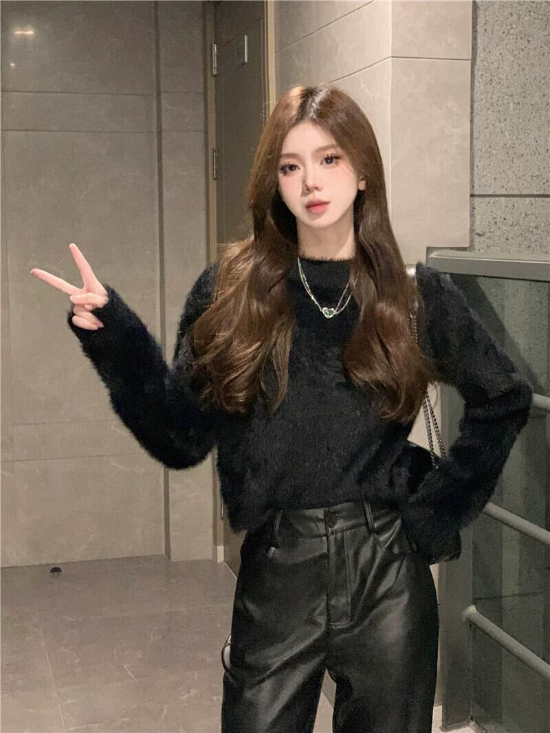 ニッチなデザインセンスの短い黒の豪華なセーターの女性の春と秋の 2023 年の新しいオールマッチスリムスリムセータートレンディな ショート ブラック スプリング 春物 オータム 秋物 0921956173926072