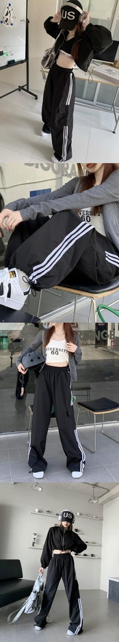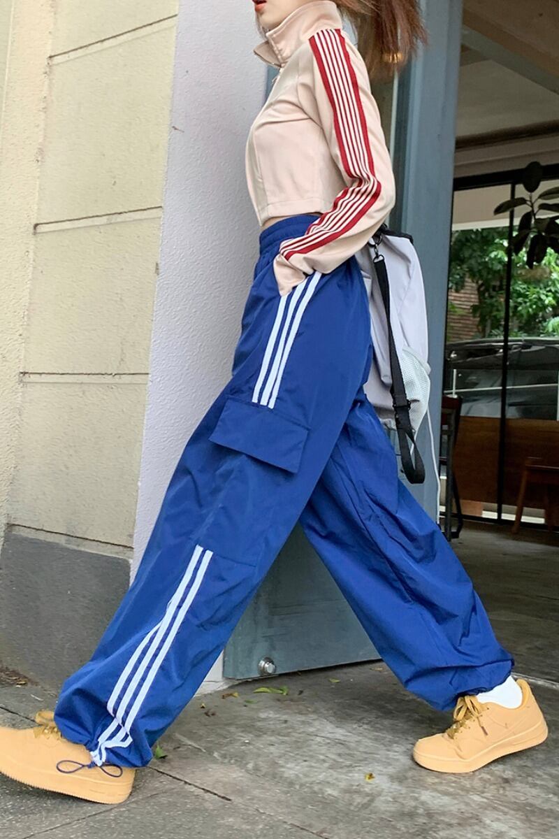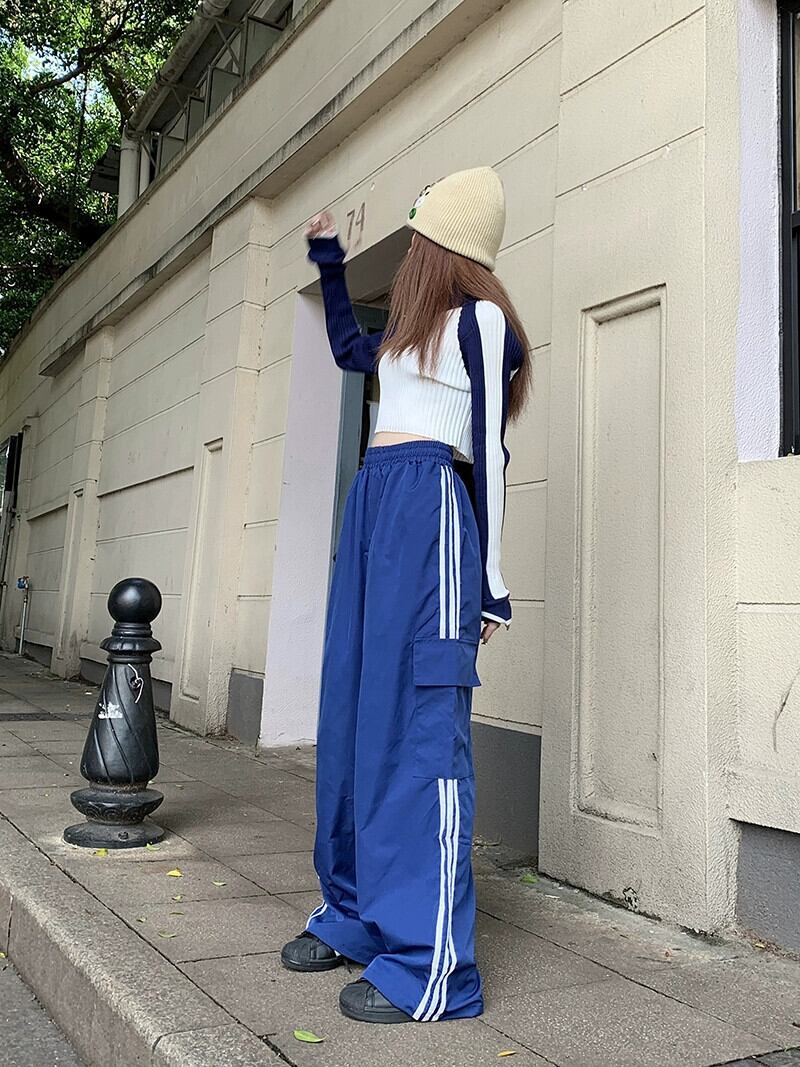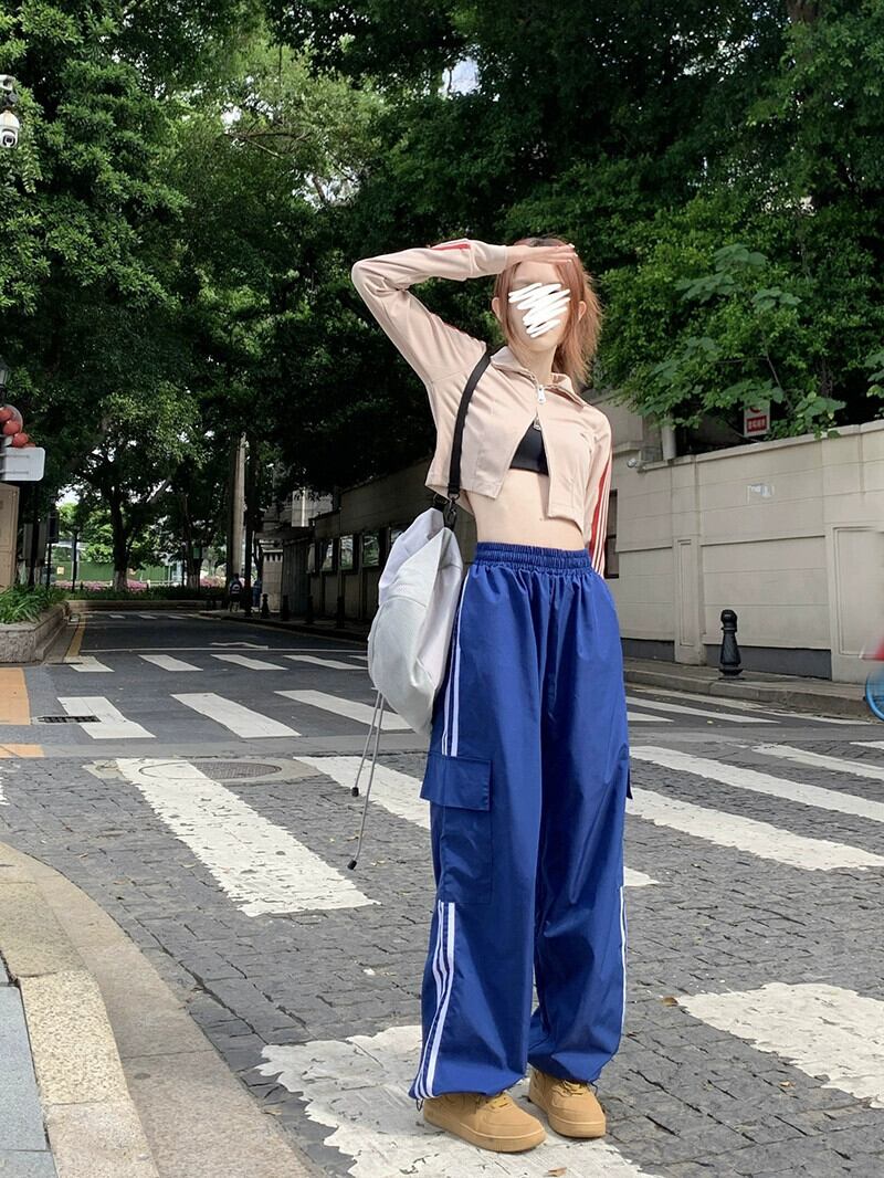 ストリートデザインセンスコントラストカラーホワイトエッジストレートカジュアルパンツレディース2023夏新作ルーズワイドレッグツーリングロングパンツ サマー 夏物 0921928818772906