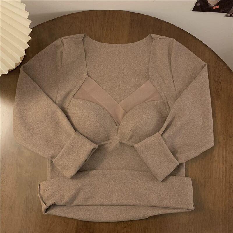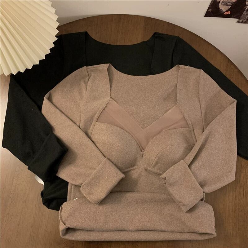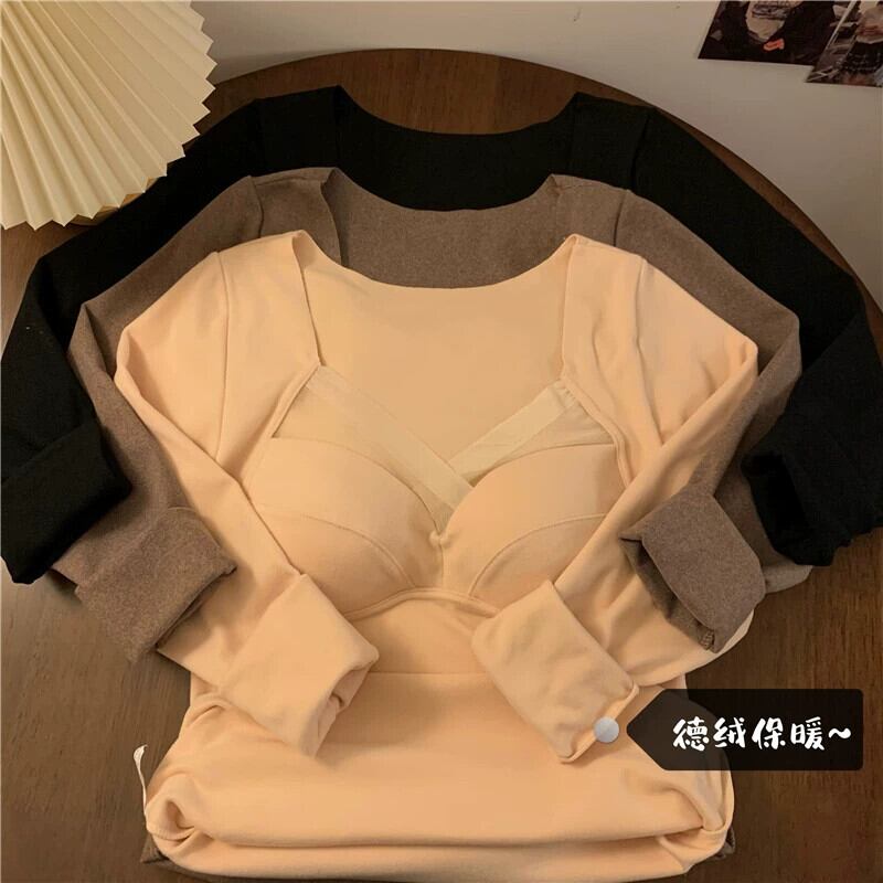 デベルベット暖かい肥厚胸パッド長袖 Tシャツ女性の春と秋 2023 多用途スリムスリムボトムシャツトップ ロング スプリング 春物 オータム 秋物 092194370416482