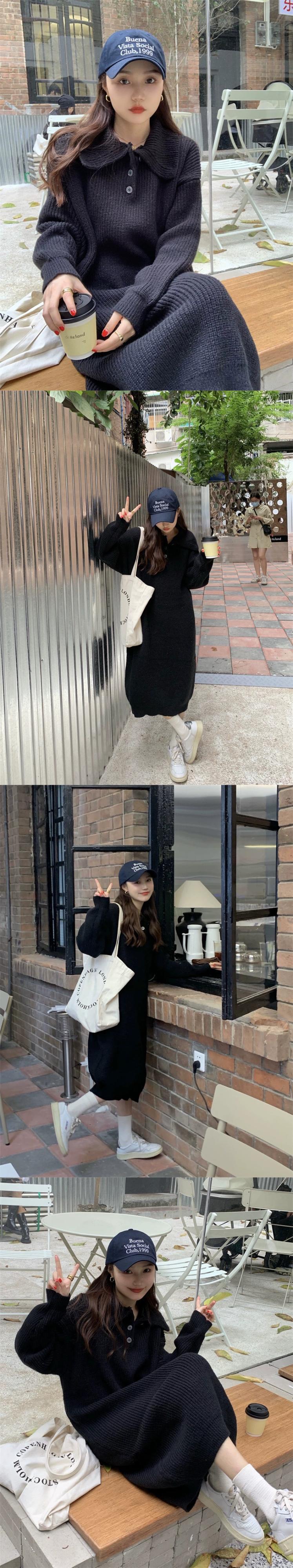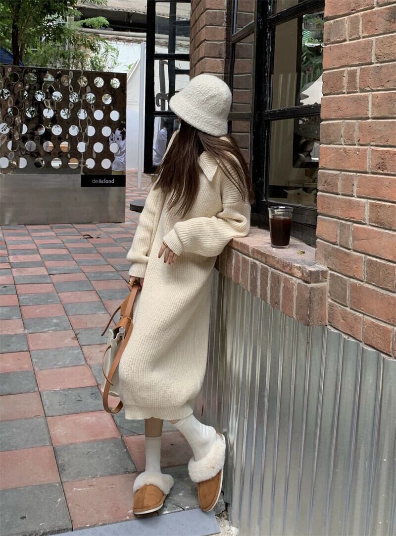 ソフトワックスレイジーウィンドポロカラーセータードレス女性の春の2023新しいルーズミッドレングス長袖スカート ロング スプリング 春物 0921922534461174