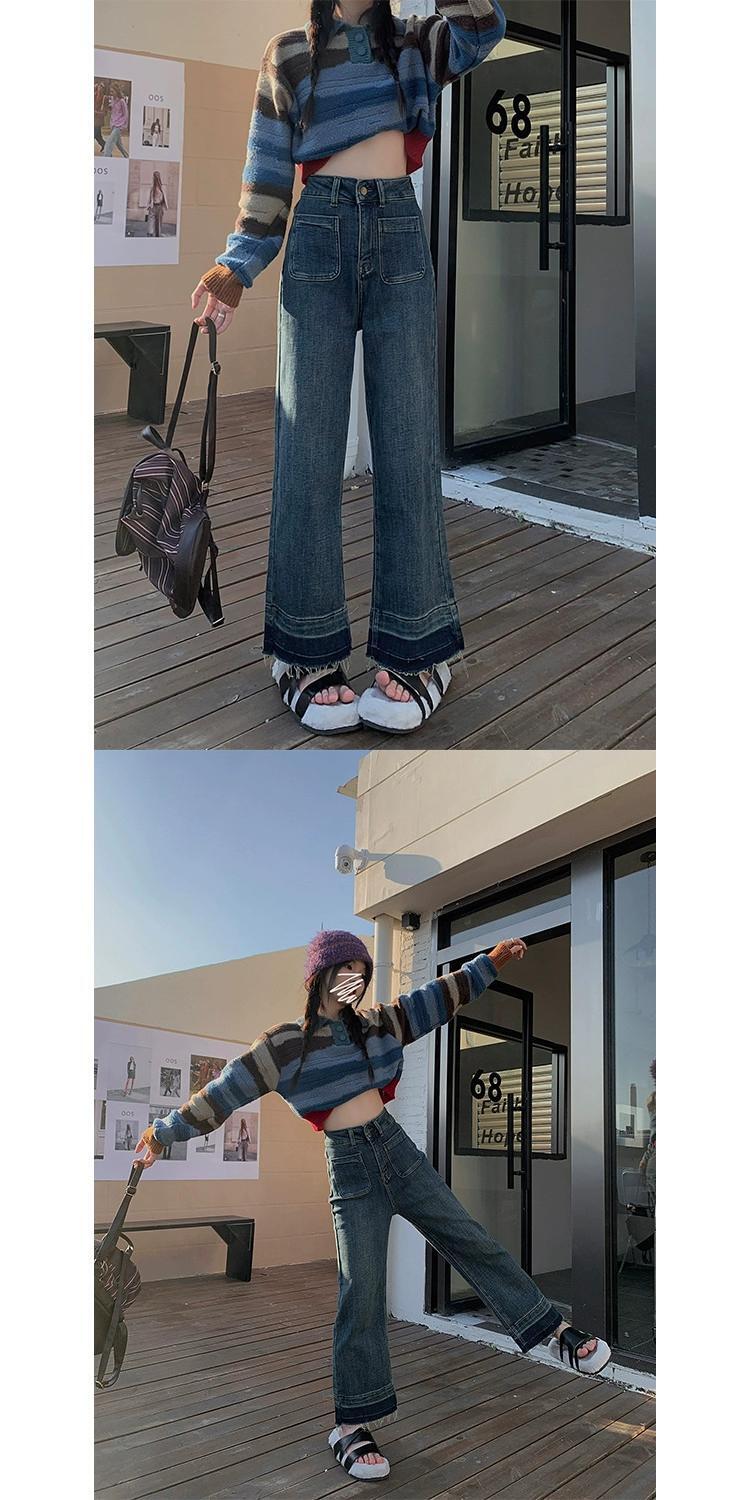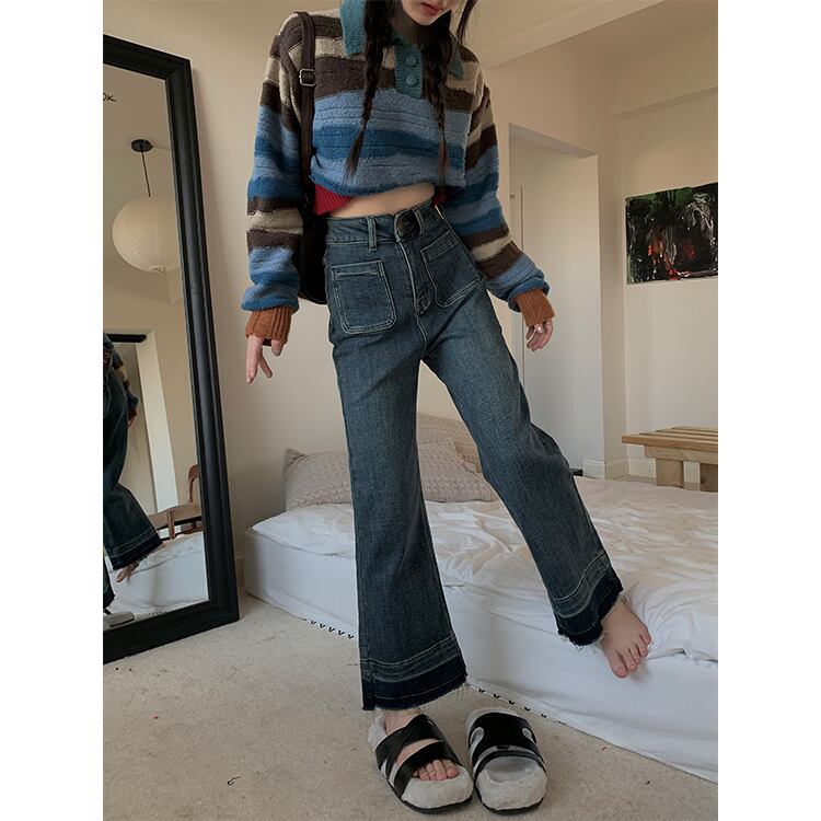 レトロオールマッチコントラストカラージーンズレディース2023冬新作ハイウエストストレートルーズスリム9点パンツ ハイウェスト ウィンター 冬物 092195818839675