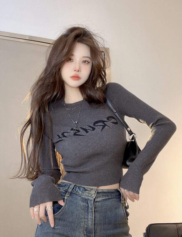 アメリカンレターショートプルオーバーセーターレディース2023春新作スリムスリム長袖ボトムシャツトレンディ ロング スプリング 春物 0921984543641806
