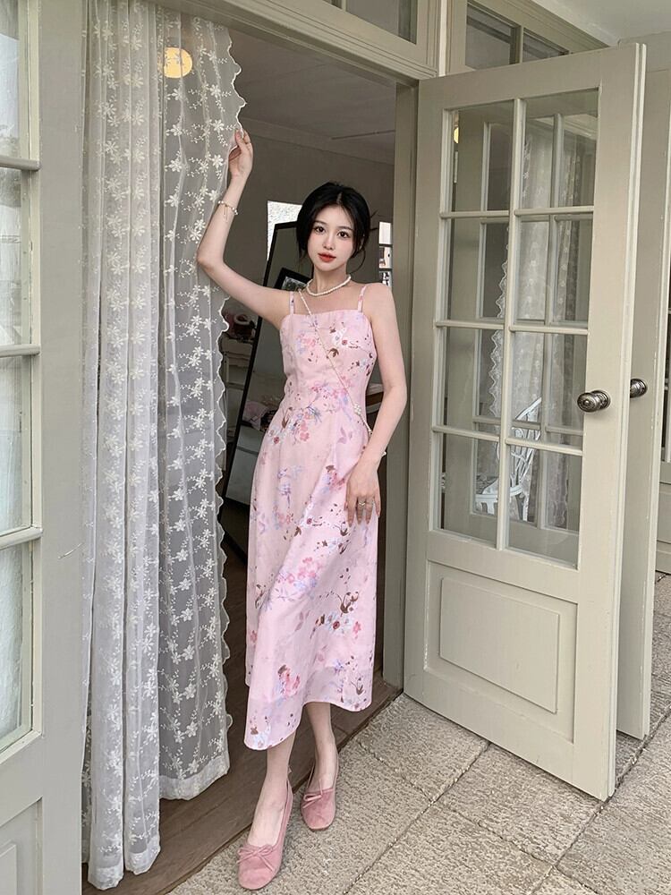 色:ピンクのサスペンダードレス,アプリコットブラウス