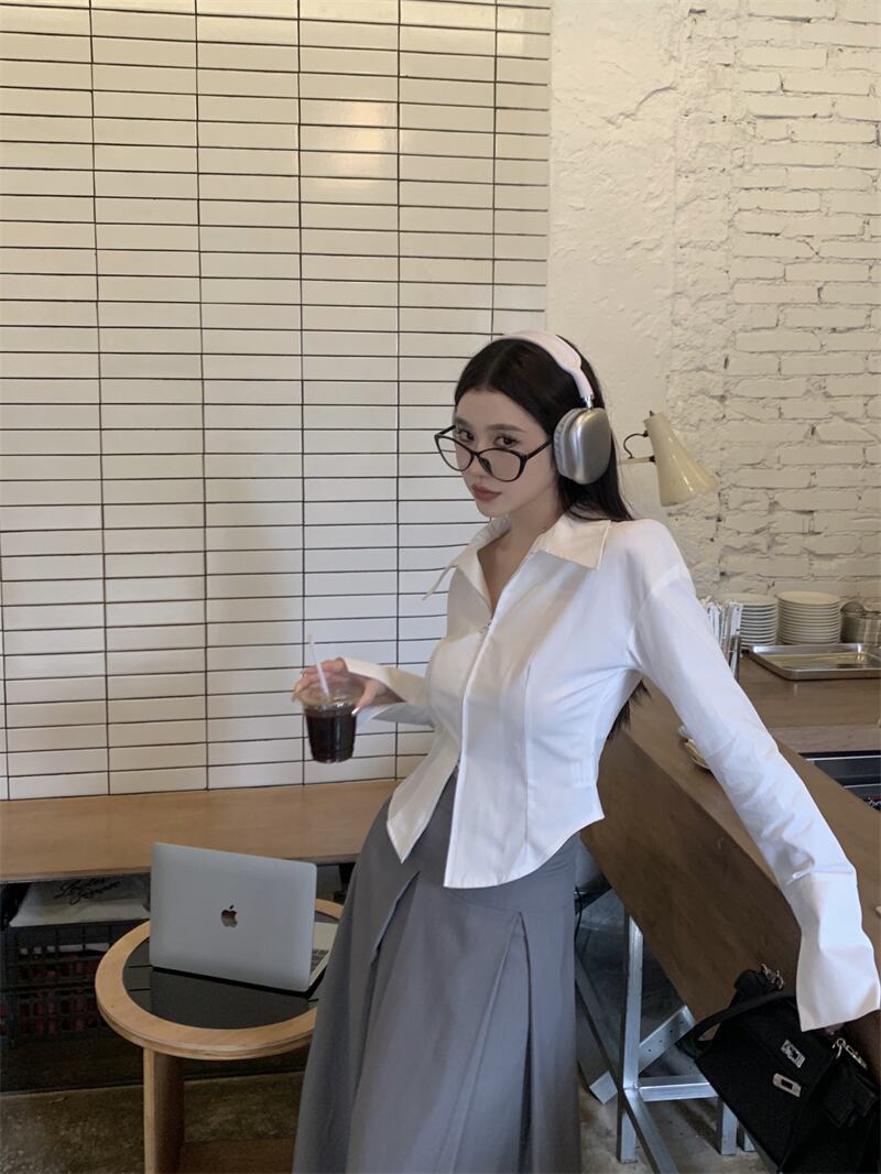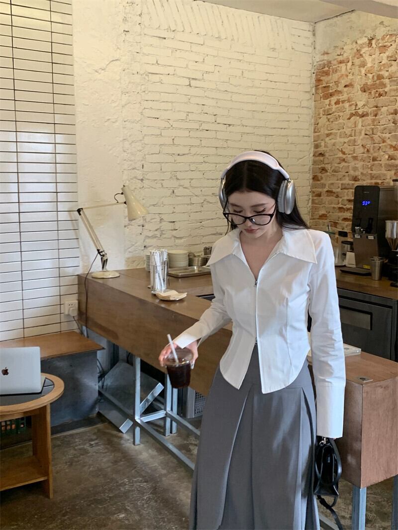 -エンドショートホワイト長袖シャツレディース2023年夏新作多用途スリムフィットジッパーカーディガンシャツ ロング サマー 夏物 0921910193492983