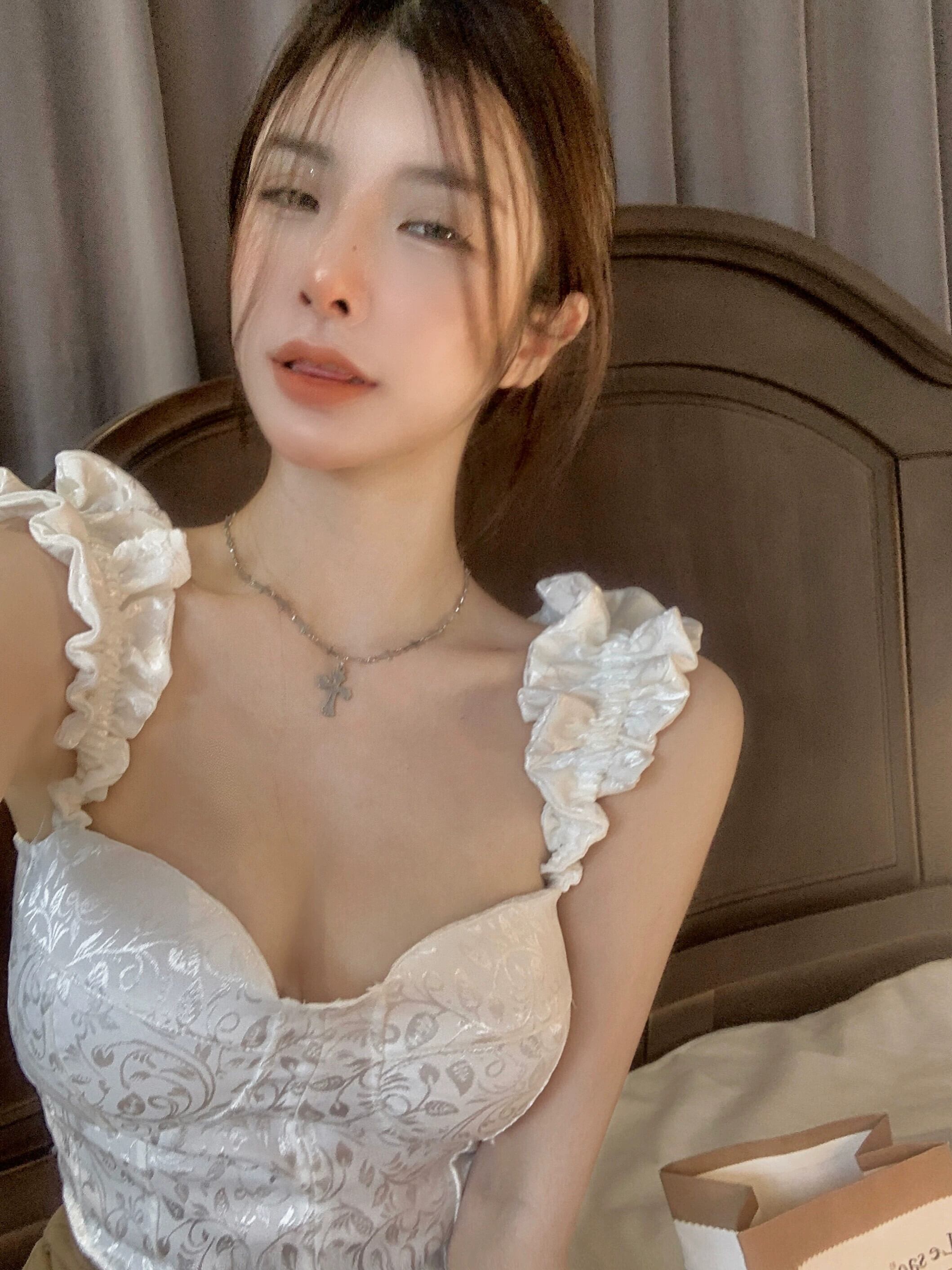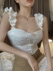セクシーな木製耳サイドキャミソール婦人服夏 2023 新しい純粋な欲望スタイルバックストラップスリムフィットノースリーブトップ サマー 夏物 ピュア 0921997206054286