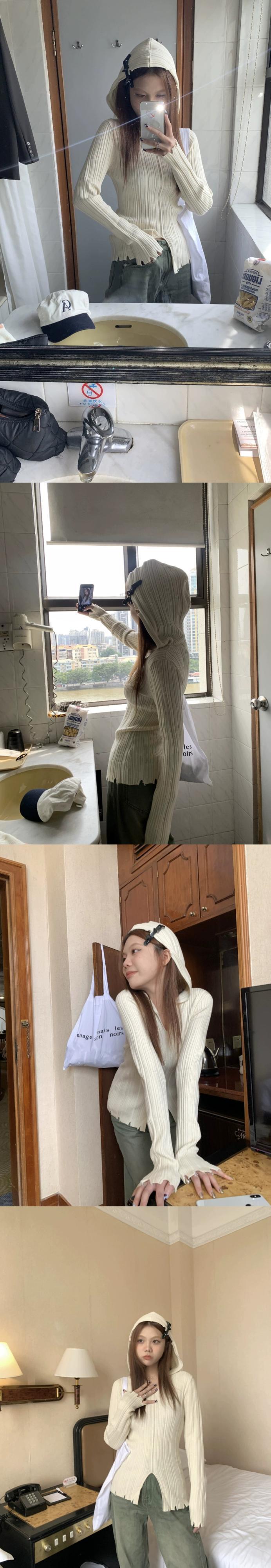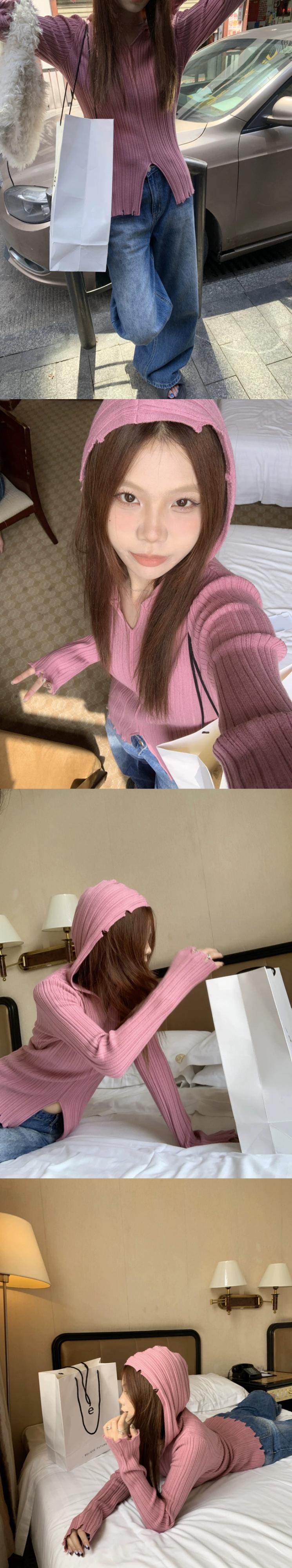 純粋な欲望風長袖フード付きセーターレディース 2023 春の新しいニッチなデザインセンススリムフィットインナートップ ロング スプリング 春物 0921934074680353