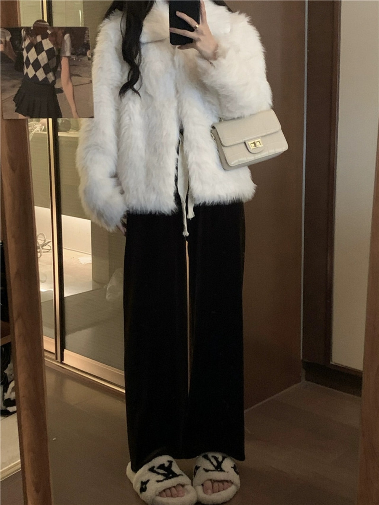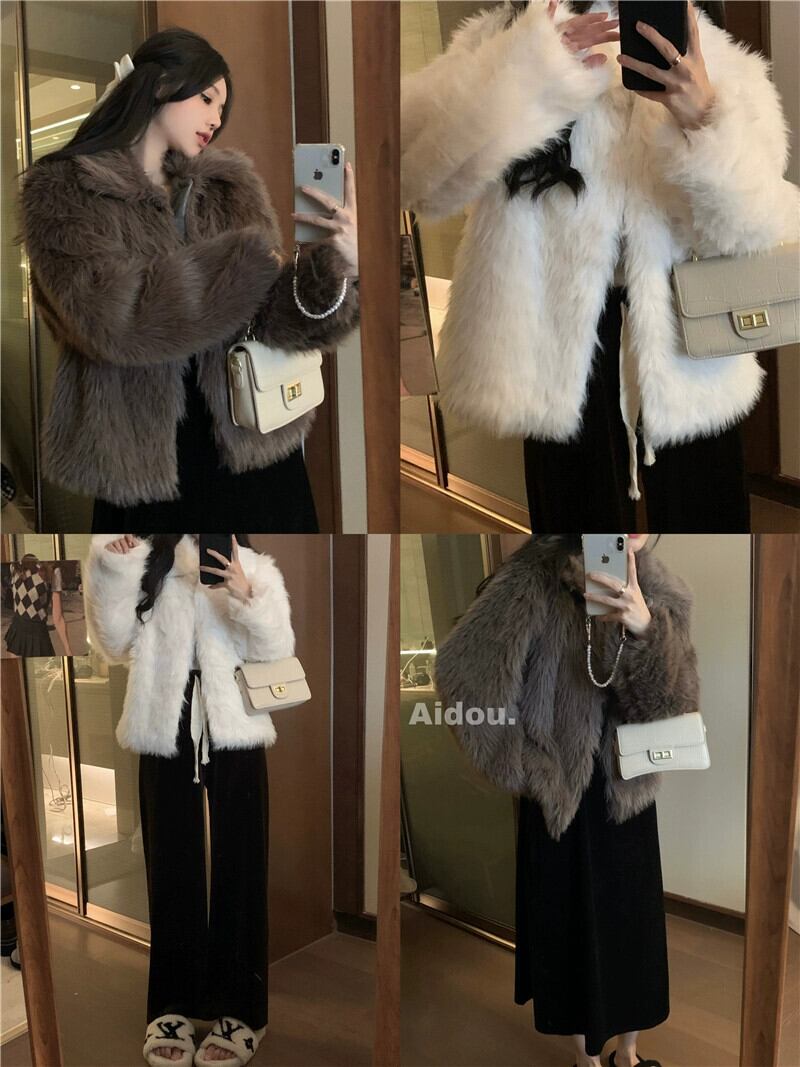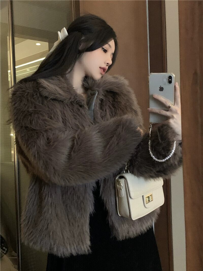 -高品質の厚手のイミテーションファーコートレディース2023冬新作ルーズソフトワックスショートカーディガントップ ウィンター 冬物 0921943889322455