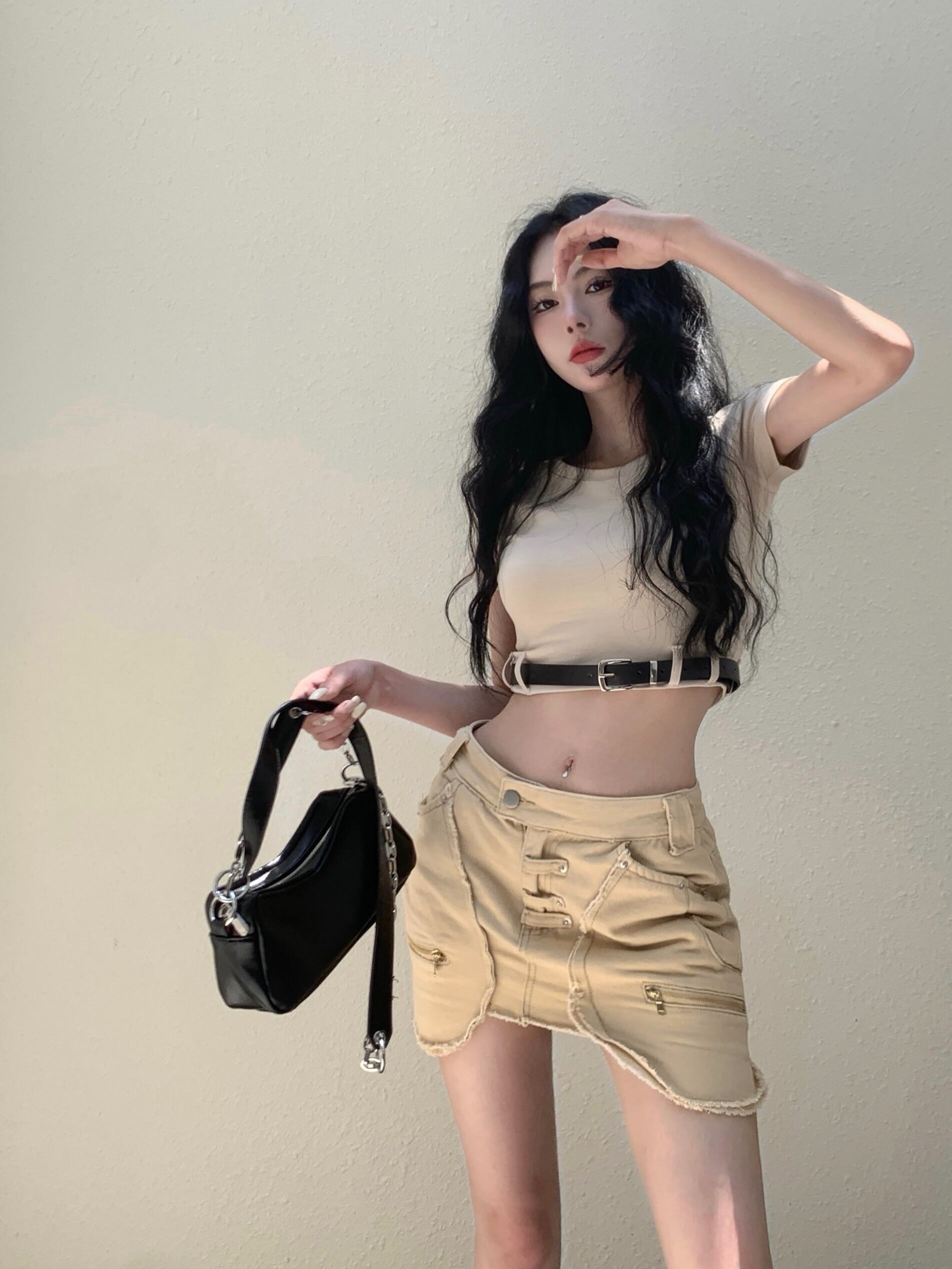 スパイスハイストリートインローエッジデニムスカート女性の夏のハイウエスト痩身ジッパーポケット不規則なショートスカート ハイウェスト サマー 夏物 0921970379405157