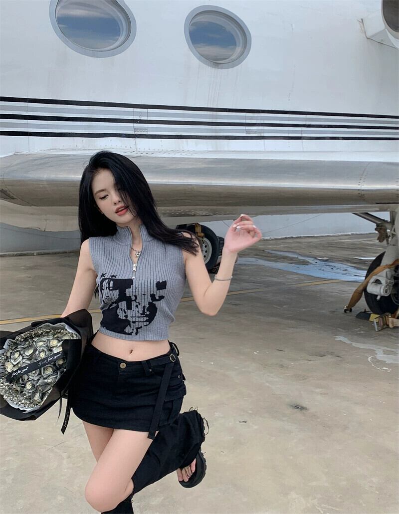 アメリカンレトロポートレートシルエットハーフハイカラーベスト女性2023夏新しいスリムショートノースリーブトップ 半袖 ハーフスリーブ サマー 夏物 0921949573871254