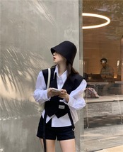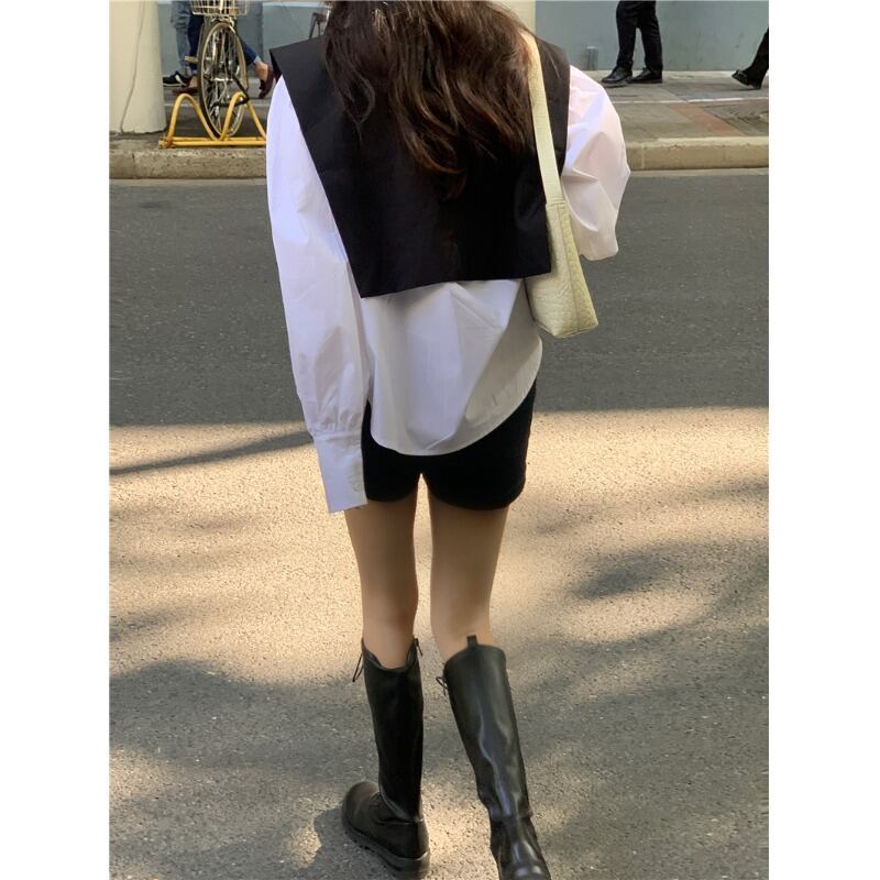 ウェアスーツ レディース ツーリングスタイル 黒ベスト ベスト 春白 パフスリーブ ショートシャツ 2点セット ホワイト ブラック スプリング 春物 092199132661033
