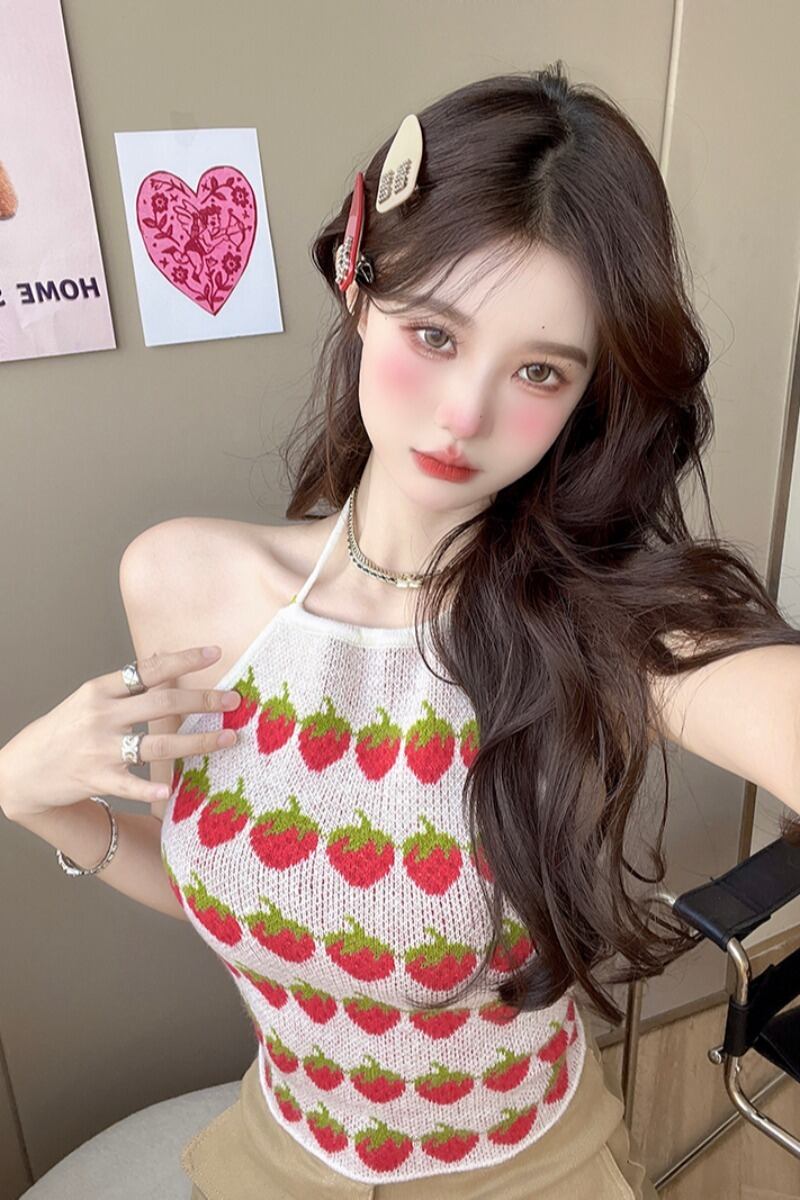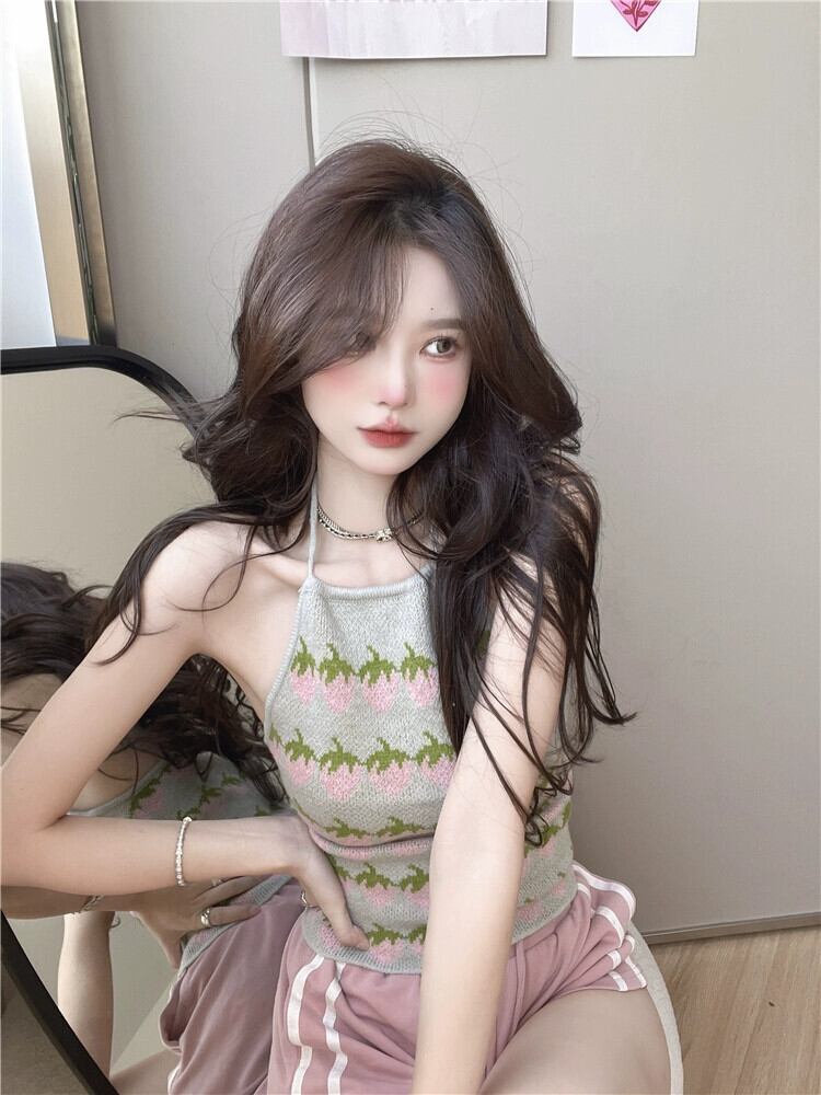 甘い風オープンバックタイストラップ吊りネックニットベスト女性の夏の 2023 新しいオールマッチショートスリムスリムサスペンダー 大人ガーリー スウィート キュート カジュアル サマー 夏物 0921920444651069