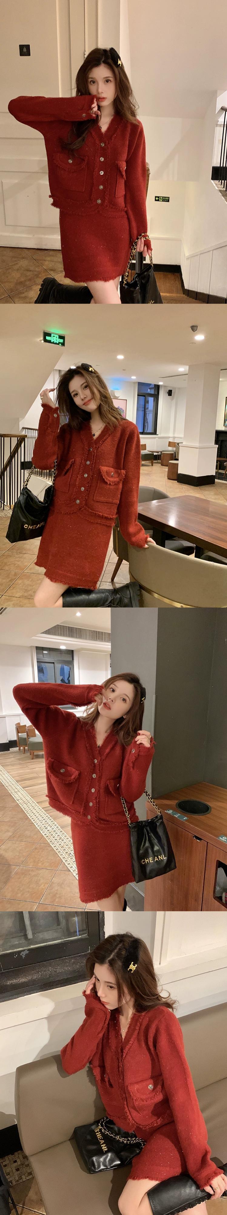 小さな香りのファッションスーツの女性の夏の 2023 新しいショートカーディガントップスリムスカートスカートツーピーストレンディ サマー 夏物 0921939218054293