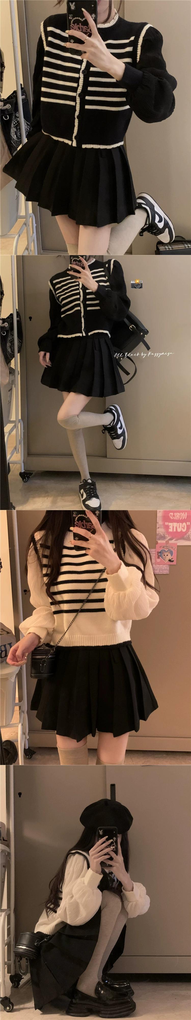 優しい風のバージョンのフェイクツーピースニットカーディガン婦人服2023年春の新デザインの感触ソフトワックスのようなオールマッチストライプ スプリング 春物 092194684331064