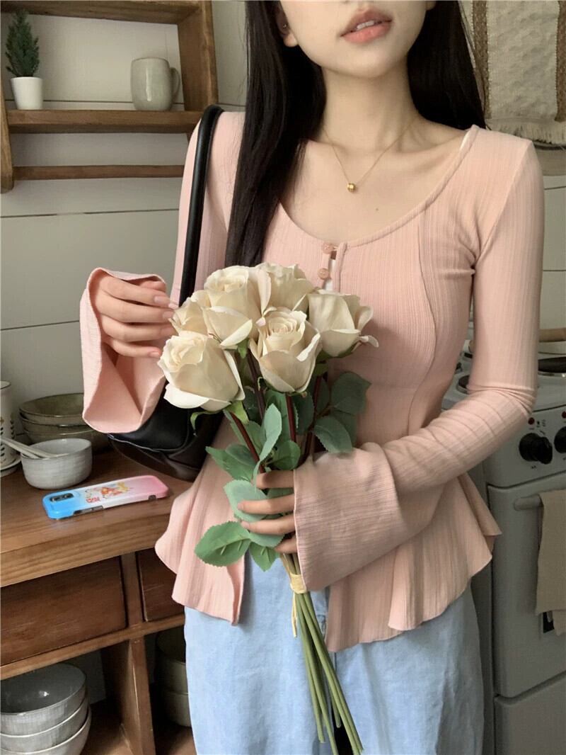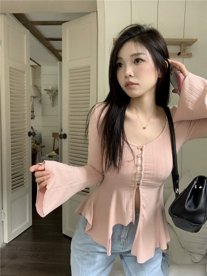 センス不規則スリットトランペットスリーブ Tシャツ婦人服 2023 春の新作スリムフィット薄手カーディガントップ潮 スプリング 春物 0921947605124967