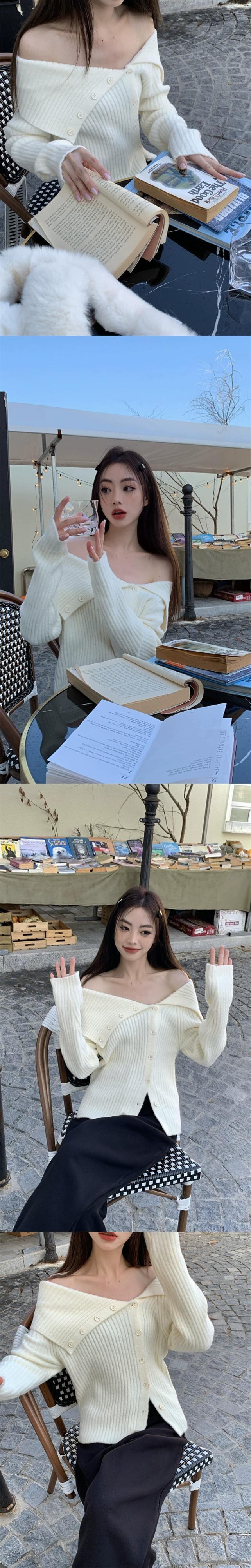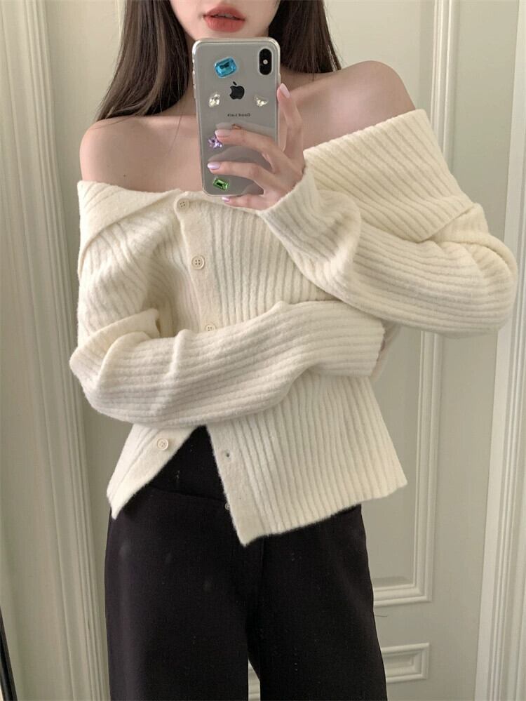 ユニークなデザインセンスの襟長袖ニットカーディガンレディース 2023 春の新作ニッチファッションオールマッチセーター ロング スプリング 春物 0921929115526797