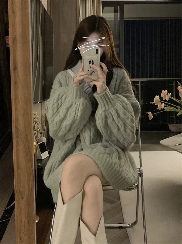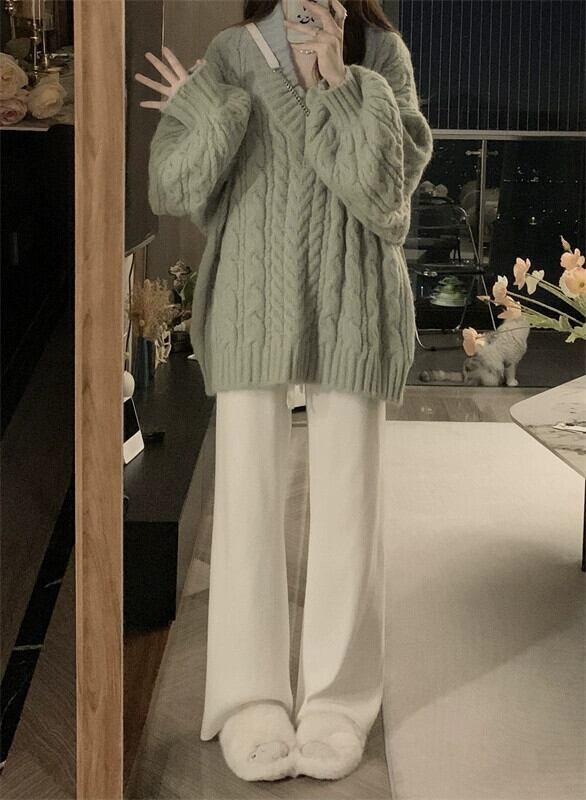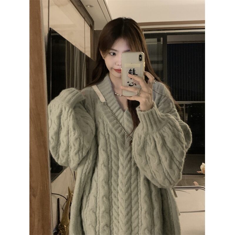 怠惰なスタイルのニッチ V ネック厚手のツイストセーター女性の 2023 春と秋の新しいオールマッチスリム長袖セーター潮 ロング スプリング 春物 オータム 秋物 Vネック 0921956478738603