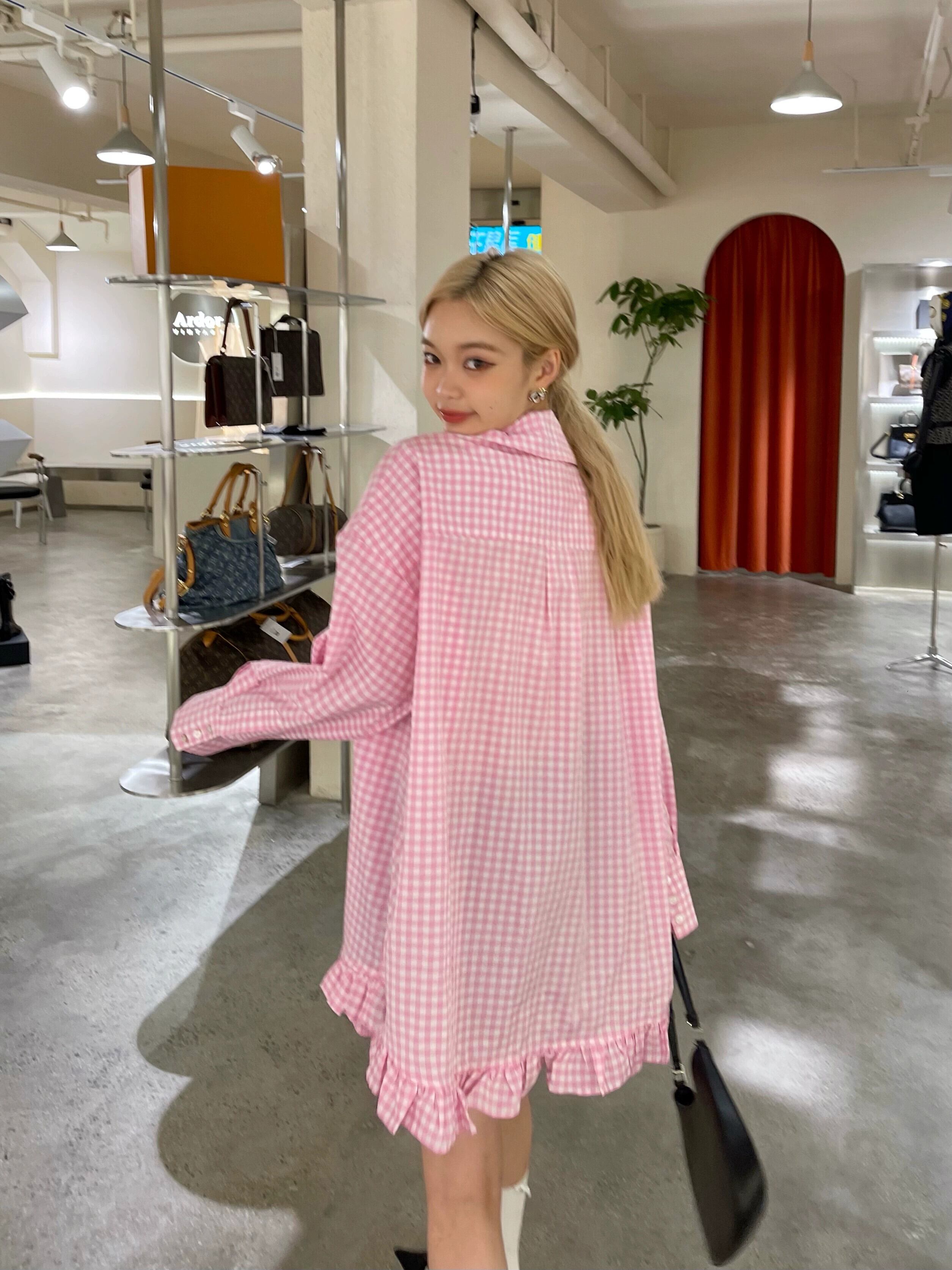 色:ピンクの格子縞