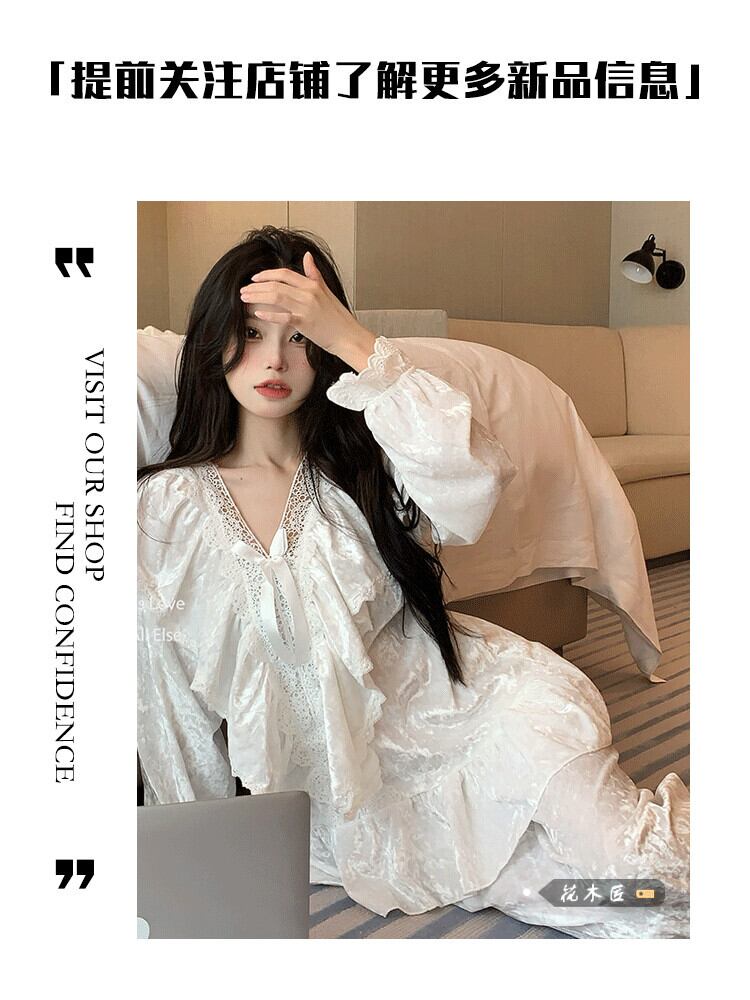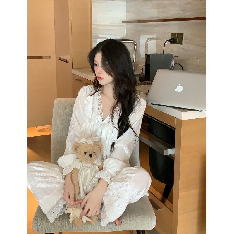純粋な欲望甘い風パジャマセット女性の冬 2023 新しいレースベルベットトップパジャマホームサービス 2 点セット 大人ガーリー スウィート キュート カジュアル ウィンター 冬物 0921919639601727
