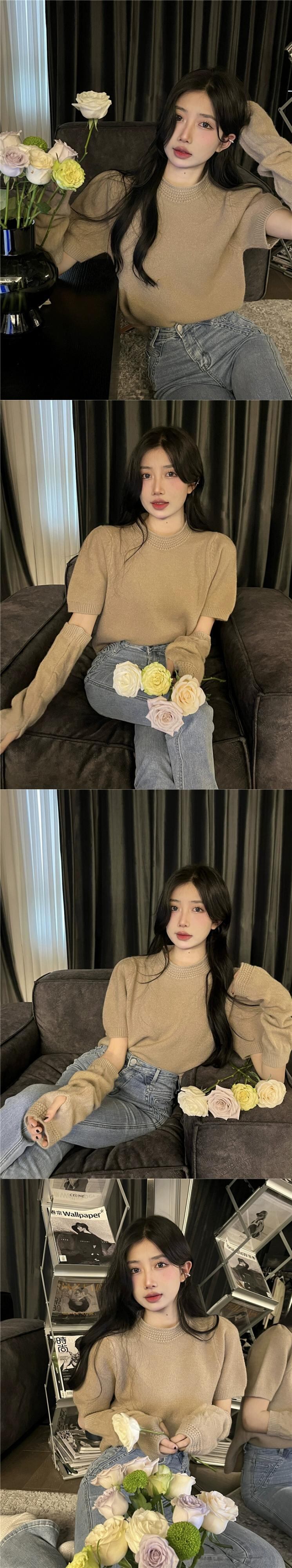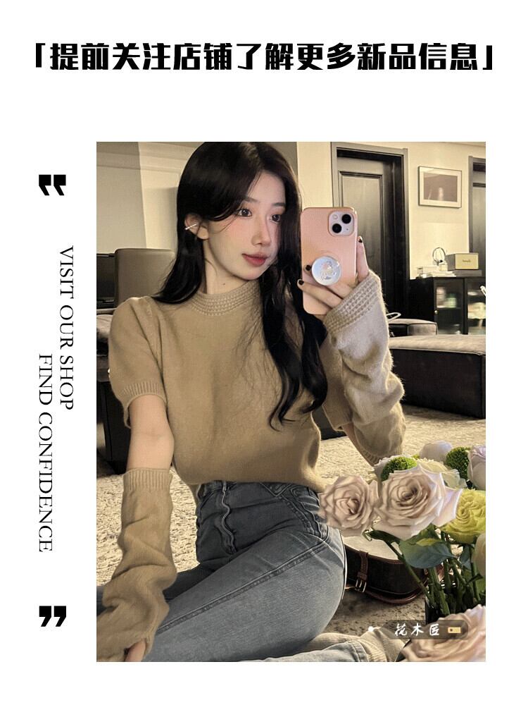 ニッチ半袖セーター女性の春と秋 2023 新しいオールマッチ自己修養スリミング底ニットトップ潮 ショート ハーフスリーブ スプリング 春物 オータム 秋物 0921961055163098