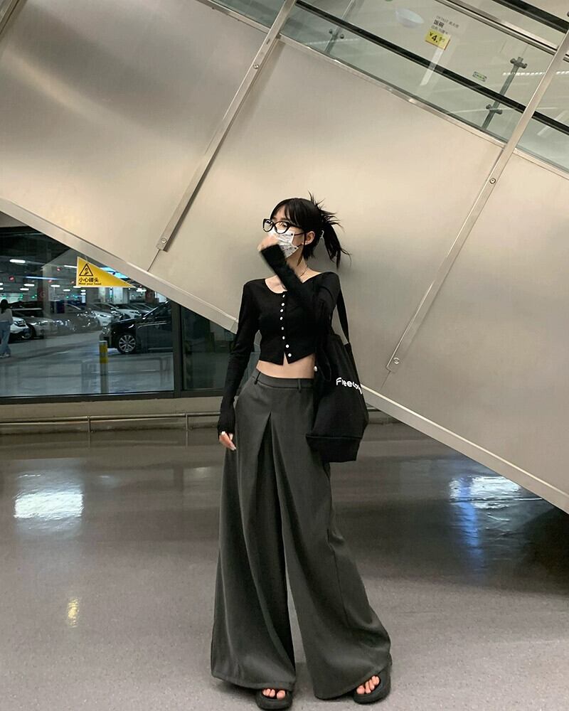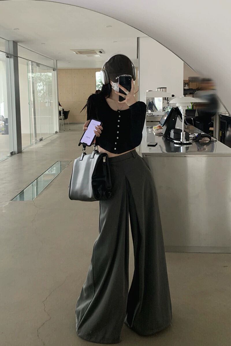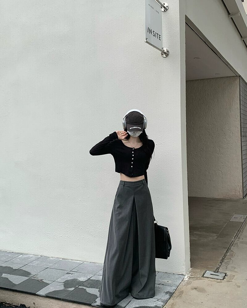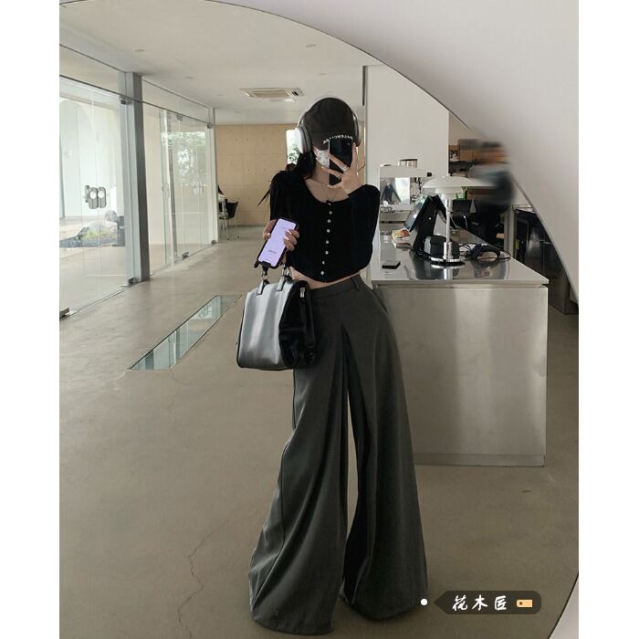 -end シックなルーズスーツパンツハイウエストカジュアルパンツレディース 2023 夏の新しいオールマッチワイドレッグパンツ潮 ハイウェスト サマー 夏物 0921912681465671