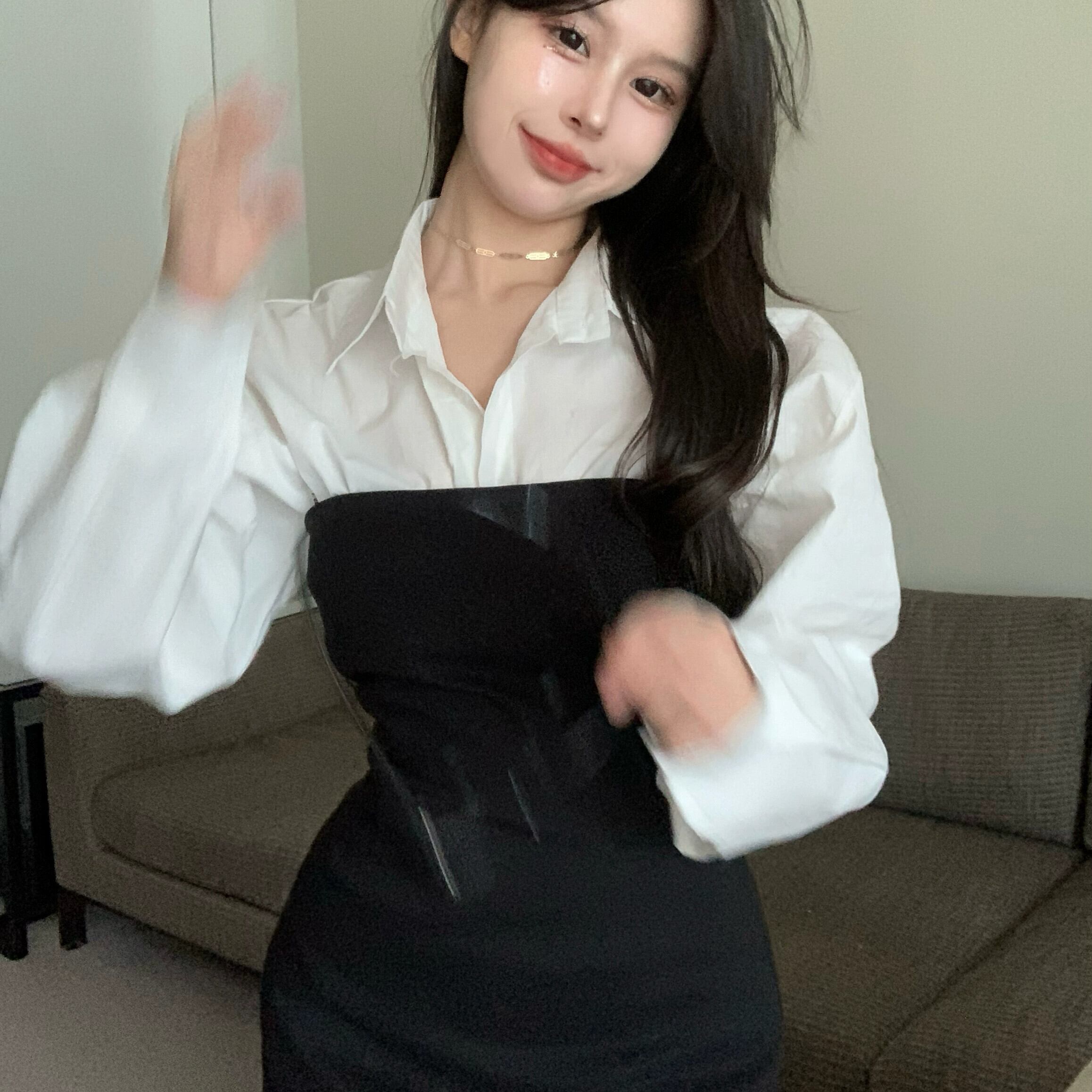 セクシーなファッションスーツスカート女性の春と秋 2023 新しいインナー長袖シャツウエストチューブトップバッグヒップスカート 2 点セット ロング スプリング 春物 オータム 秋物 0921946047742025