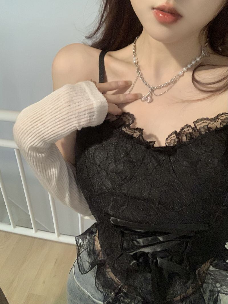 セクシーなレースストラップキャミソール女性の夏 2023 新しいオールマッチショートセクションスリムスリムトップ潮 サマー 夏物 0921934435025471