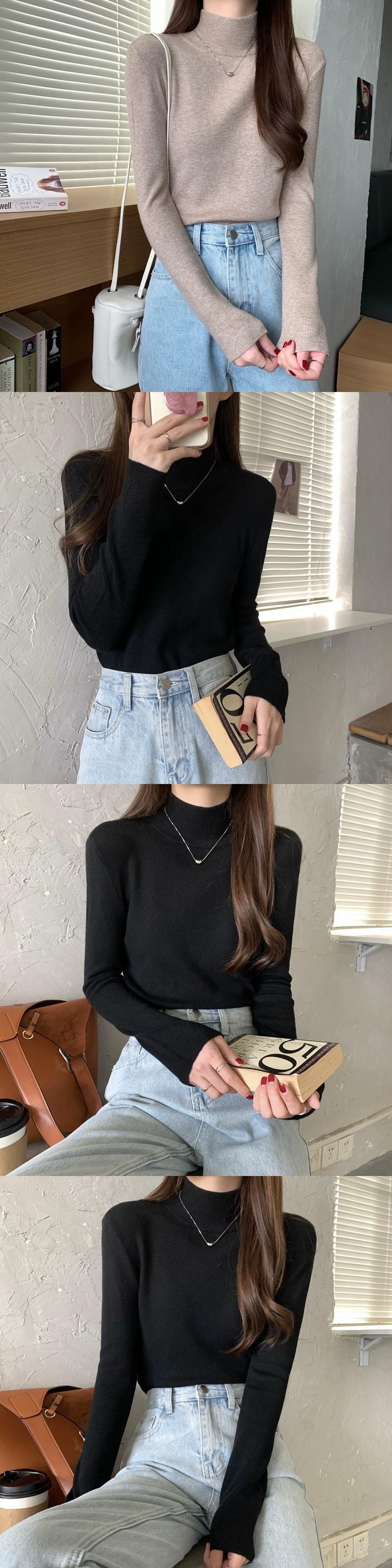 ソリッドカラーのオールマッチハーフハイカラーニットセーターレディース2023年春の新作スリムフィットと薄手のインナーボトリングシャツトップのバージョン スプリング 春物 0921925653302661