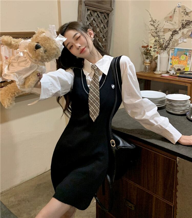 スタイル V ネック黒ノースリーブニットドレス女性の春 2023 新しい痩身スリムヒップスカートトレンディな ブラック スプリング 春物 Vネック 0921968782513647