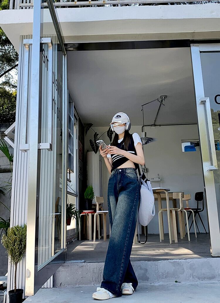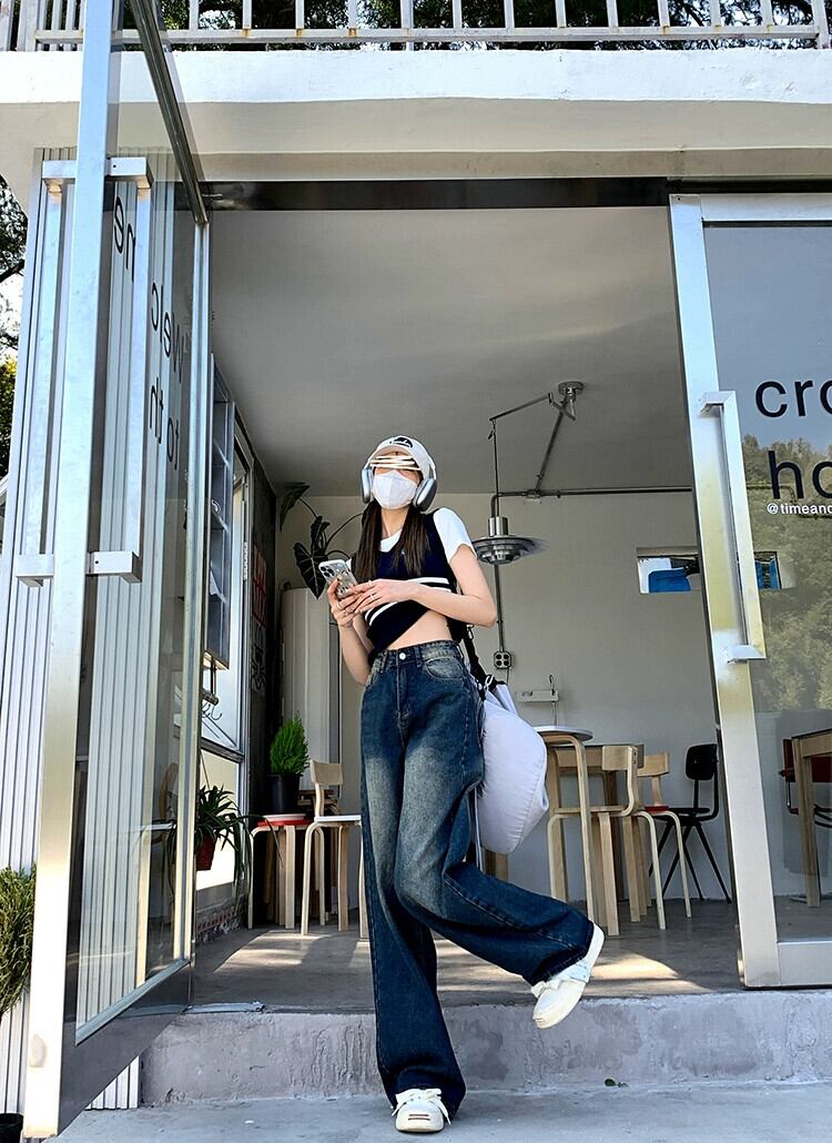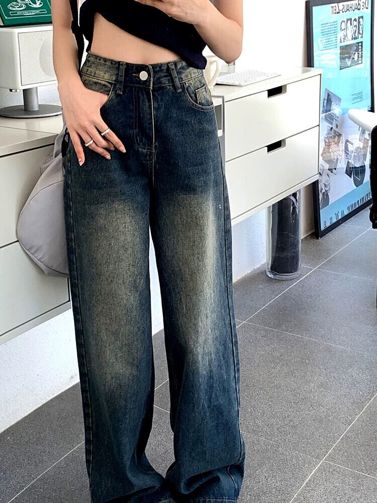 レトロハイウエストルーズスリムジーンズ女性の早春 2023 新しいオールマッチカジュアルワイドレッグモップパンツイン ハイウェスト スプリング 春物 0921999501842408