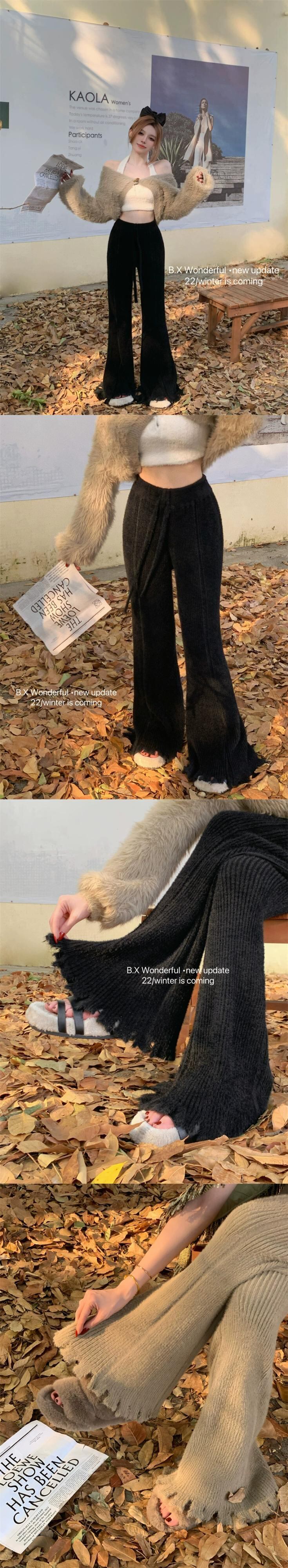 ホワイトハイウエストドレープカジュアルパンツ女性の春 2023 新しい小さな電話ニットマイクロフレアパンツズボン ハイウェスト レッド スプリング 春物 0921965506161275