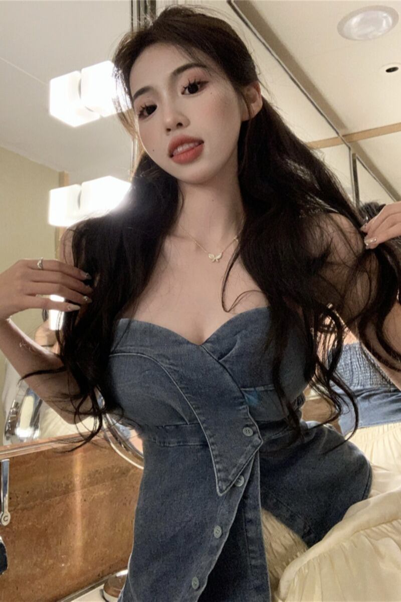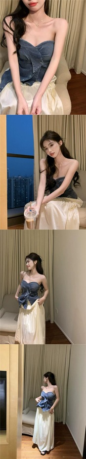 スパイスガールズカウボーイチューブトップ小さなベスト婦人服夏レトロウエスト不規則なセクシーなショートトップラップ胸 サマー 夏物 0921938203128624