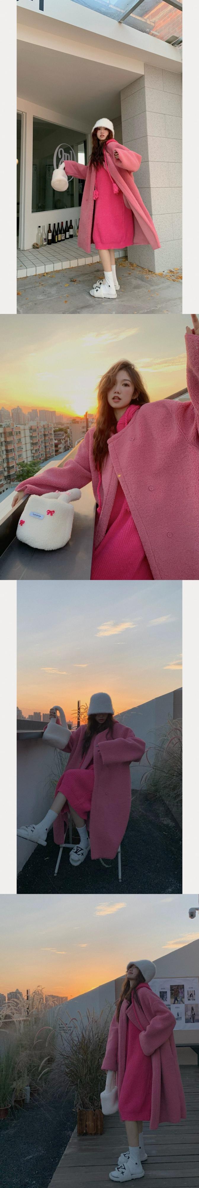 レイジーウィンドピンク厚いウールコートの女性の春と秋の2023新しいオールマッチルーズミドル丈ウールコート潮 スプリング 春物 オータム 秋物 0921914401342810