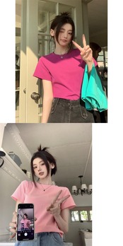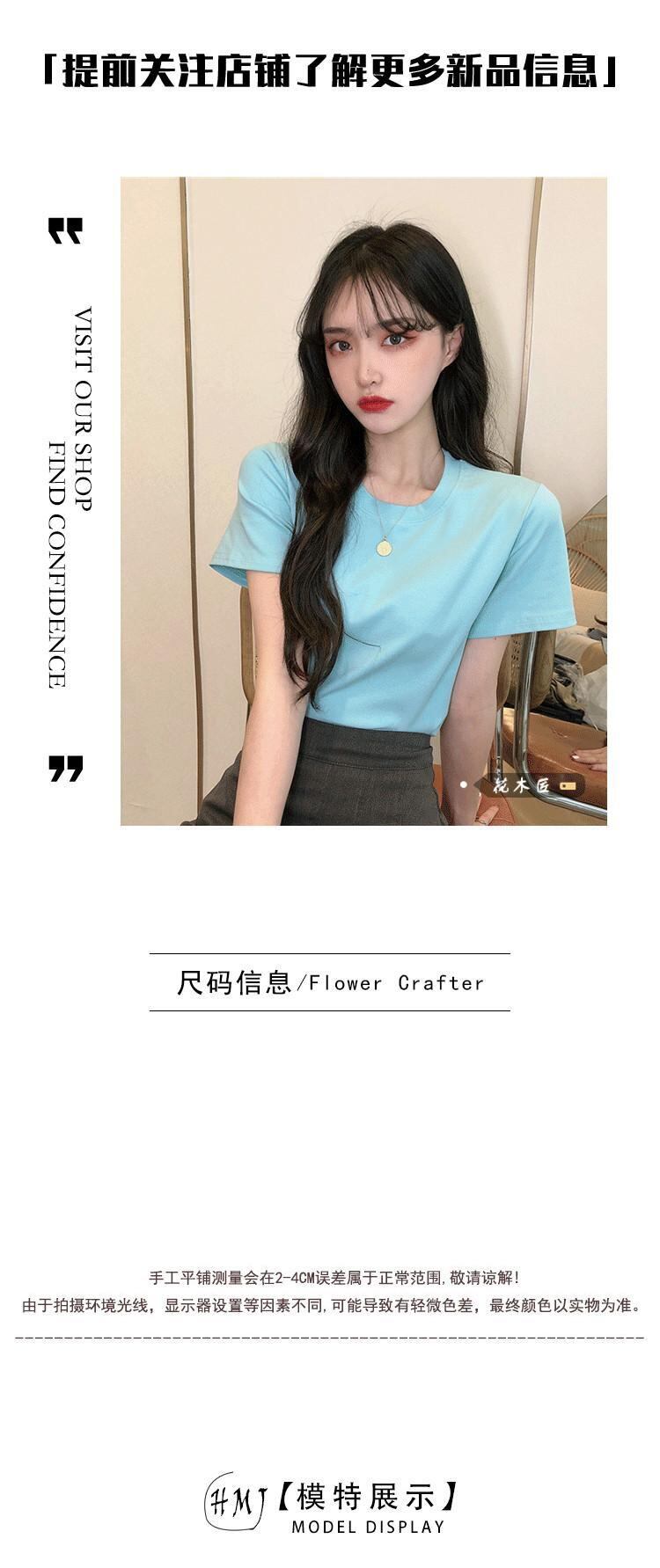 ニッチデザインセンスショート半袖ラウンドネックTシャツレディース2023夏新作オールマッチ修身スリムボトムストップ サマー 夏物 Oネック 0921977900878423