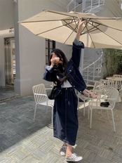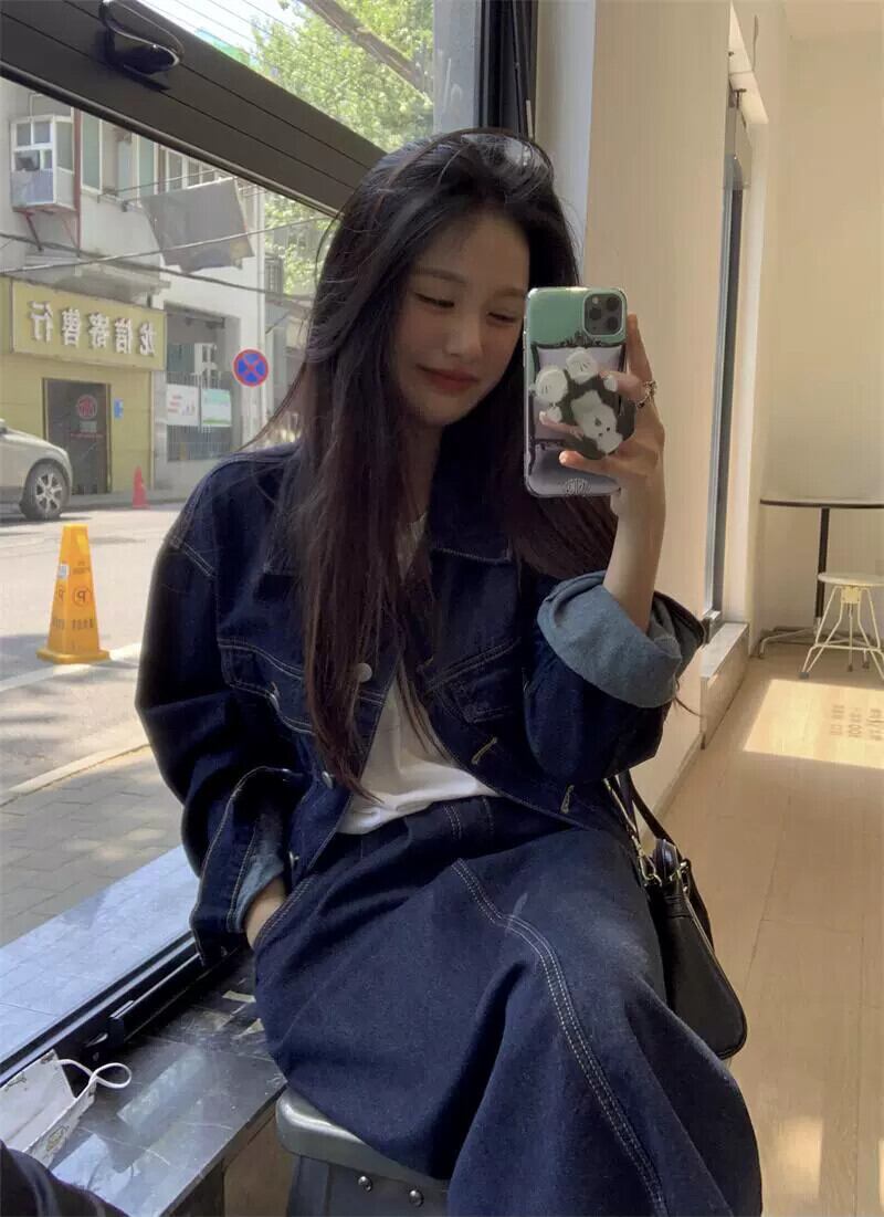 レトロスーツ女性の早春 2023 ルーズデニムジャケットウエストスリムスカートツーピーストレンディ スプリング 春物 092191519477131