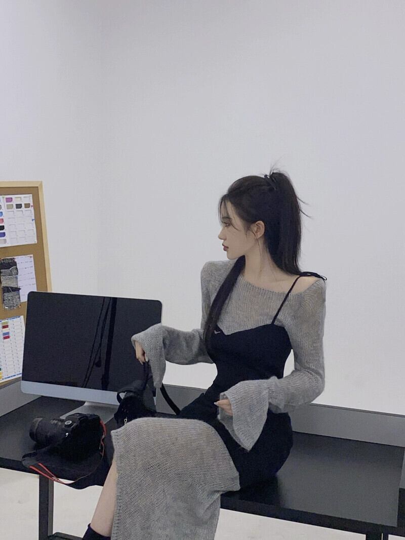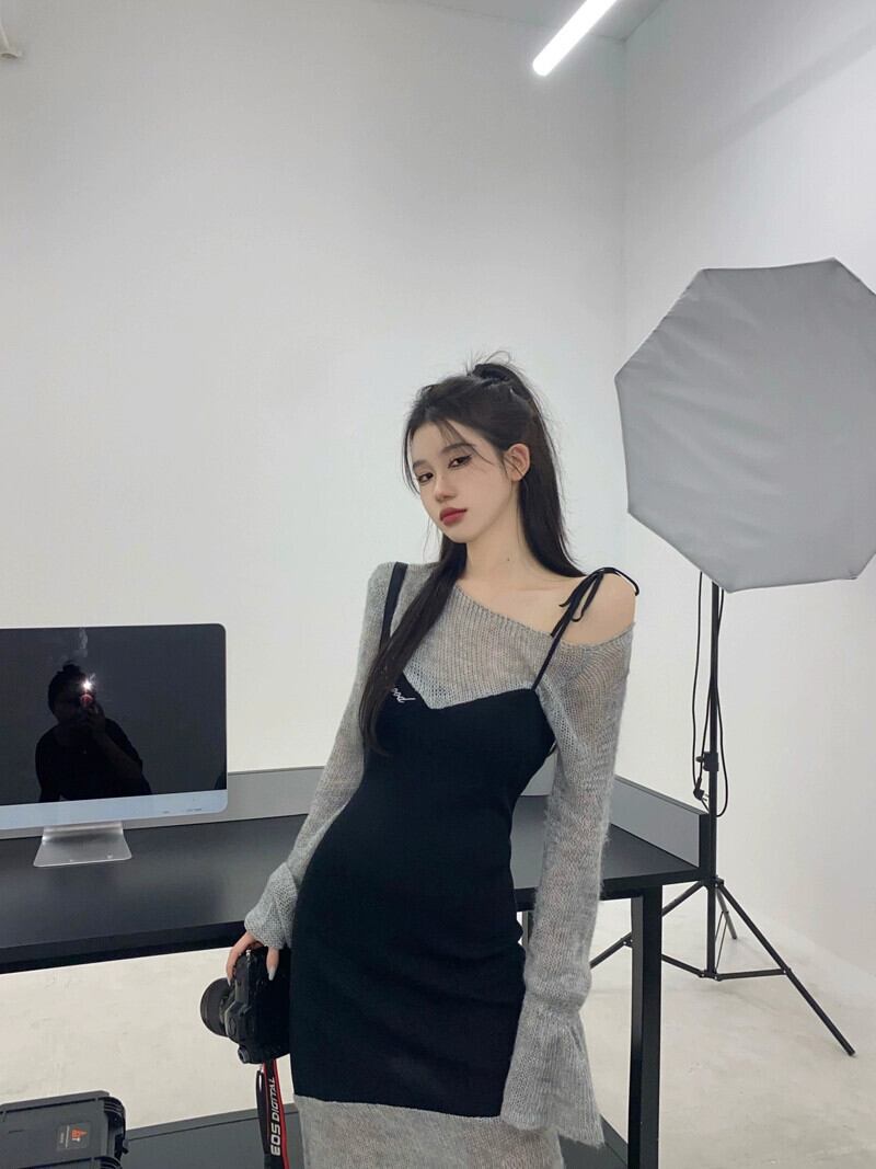 有能でシックなフェイクツーピースサスペンダードレス女性の夏 2023 新しいレトロステッチ不規則なウエストスカート サマー 夏物 0921976722148167