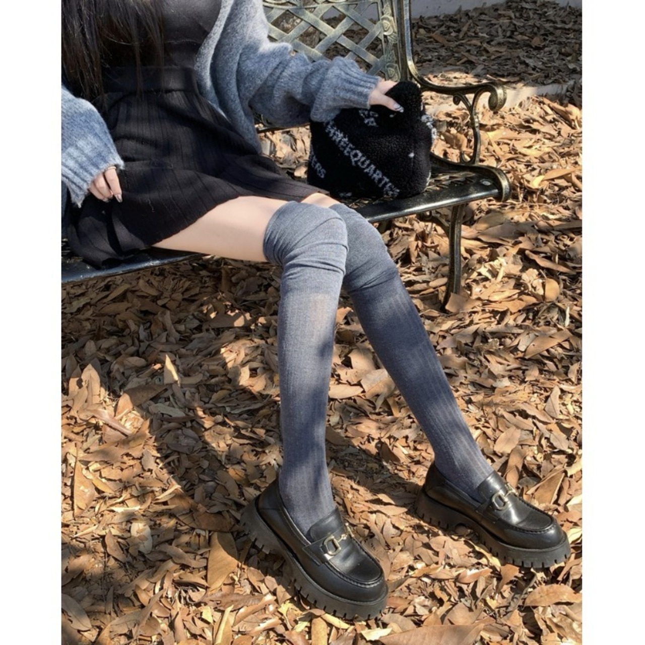 バージョンのデザインセンススプライシングストッキング女性の春の 2023 新作オールマッチ薄型太ももニーソックスパイルパイルソックス潮 スプリング 春物 タイツ 0921932197696384