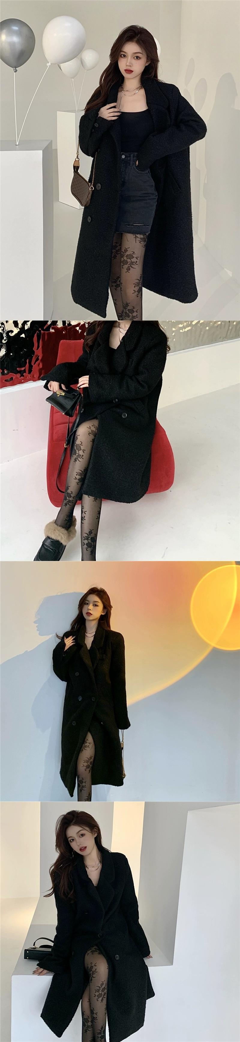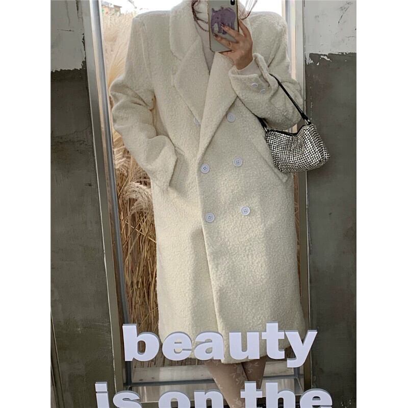 多彩なデザインセンス厚みのあるキルティングウールコートの女性の 2023 冬の新しいルーズダブルブレストウールコート潮 ウィンター 冬物 0921964190471592
