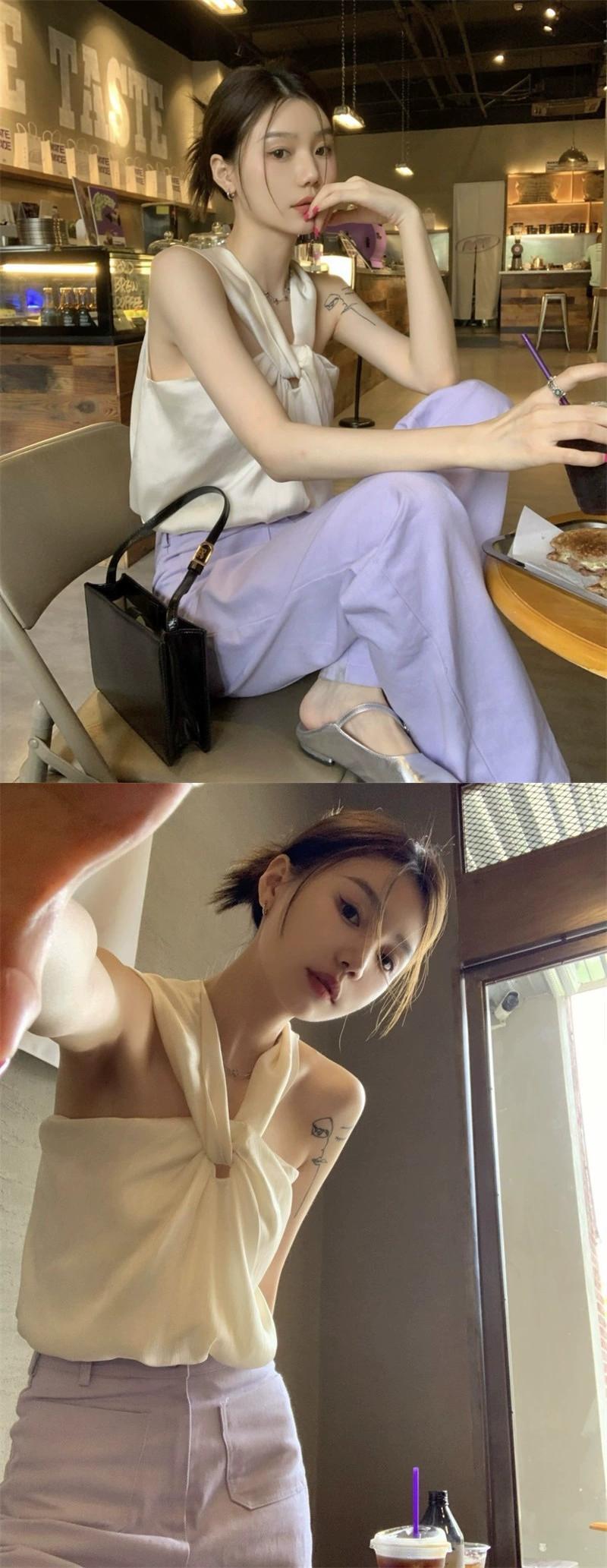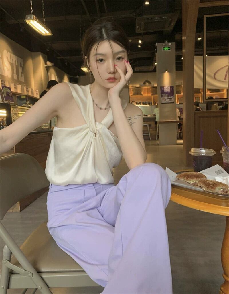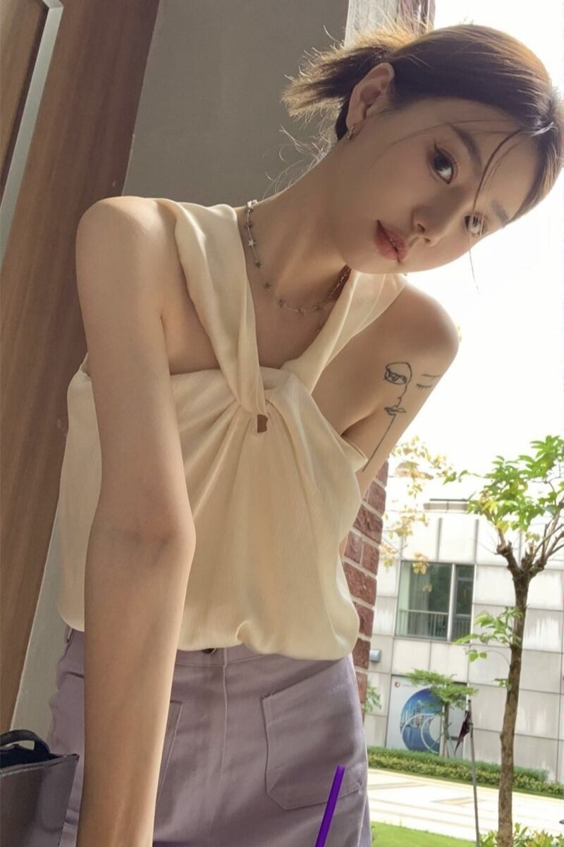 フレンチスタイルの優しいスタイルのデザインセンス吊りネックベスト婦人服2023年夏新作痩身薄型無地オールマッチトップス サマー 夏物 ソリッドカラー 0921962590797663