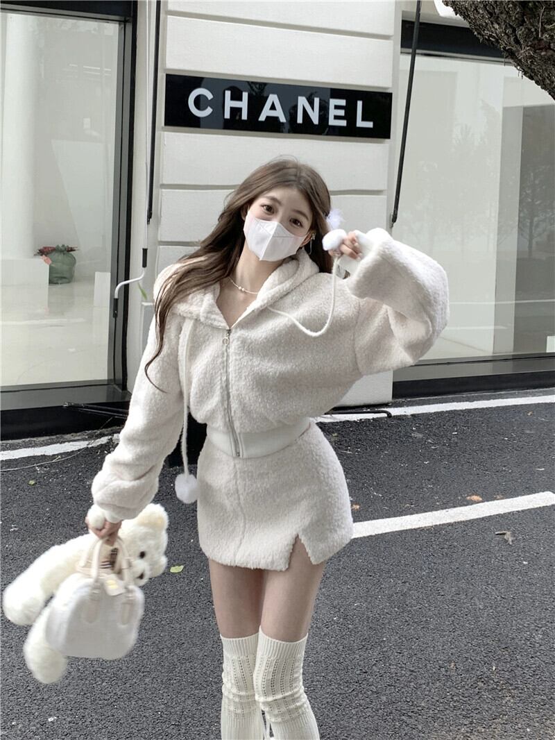 純粋な欲望風ぬいぐるみスーツスカート女性の夏 2023 新しいフード付き長袖カーディガンスリットバッグヒップスカート 2 点セット ロング サマー 夏物 0921974216423214