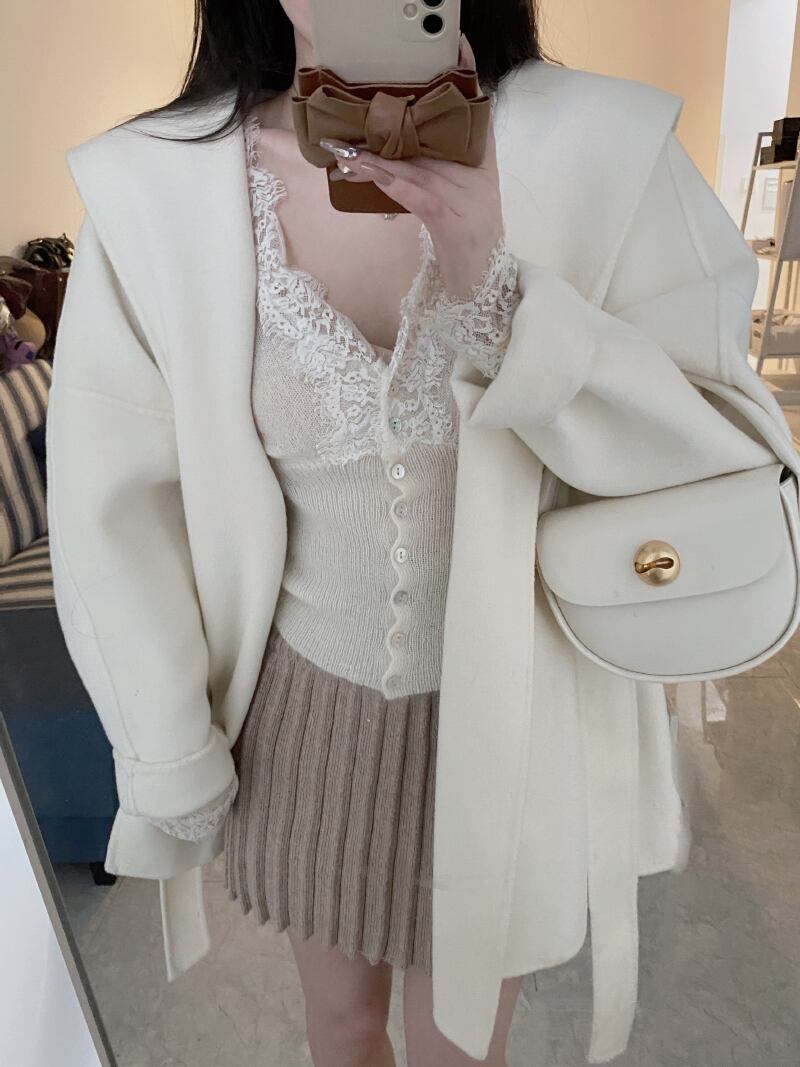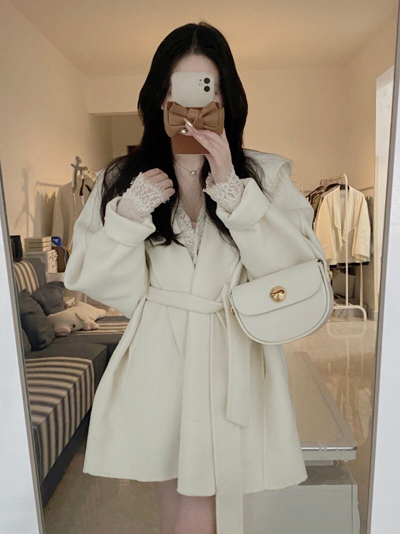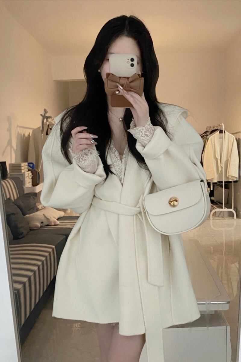 スタイル優しい風ルーズウールコート女性の春と秋 2023 新しいオールマッチレースミッドレングスウールコートトレンド スプリング 春物 オータム 秋物 0921977159443414