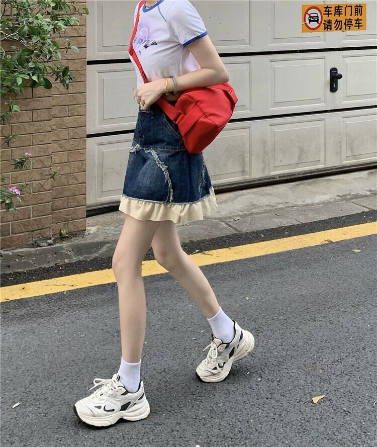 レトロな個性デザインセンスレーススカート女性の夏の 2023 新しいハイウエスト痩身オールマッチデニム A ラインスカート ハイウェスト サマー 夏物 Aライン 0921963264813003