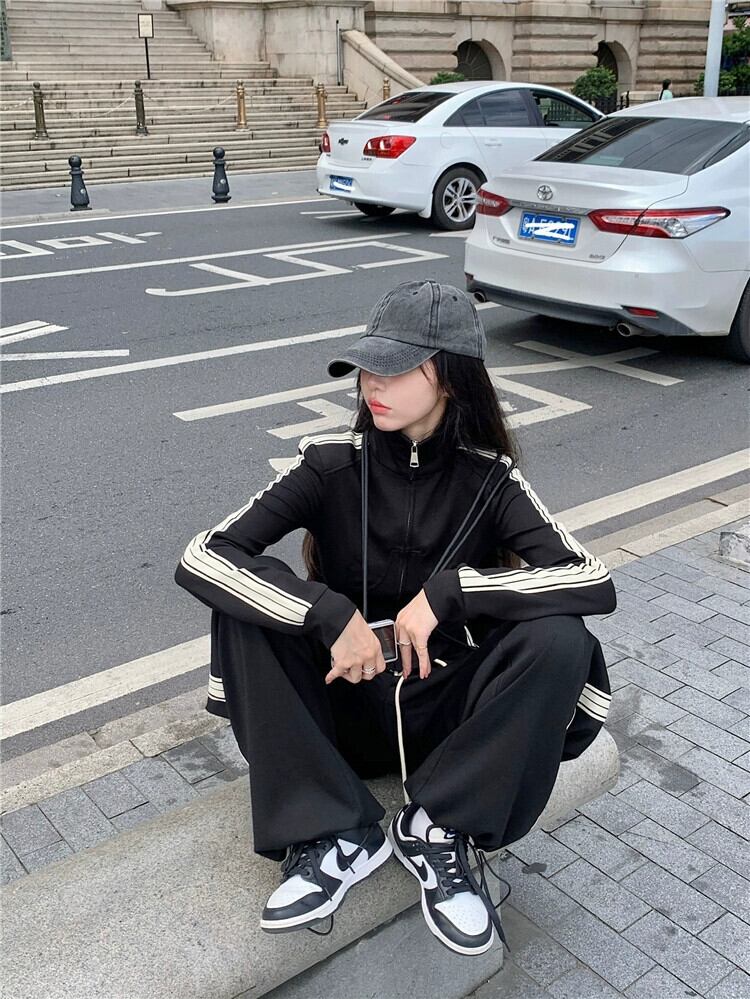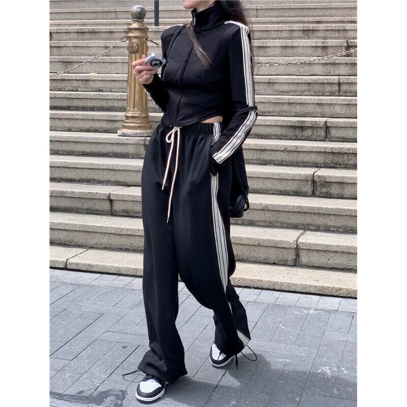 スタイルカジュアルスポーツスタイルスーツ女性の 2023 春の新作ショートカラージャケットハイウエストワイドレッグパンツ 2 点セット ハイウェスト スプリング 春物 ワイドパンツ 0921920728085759