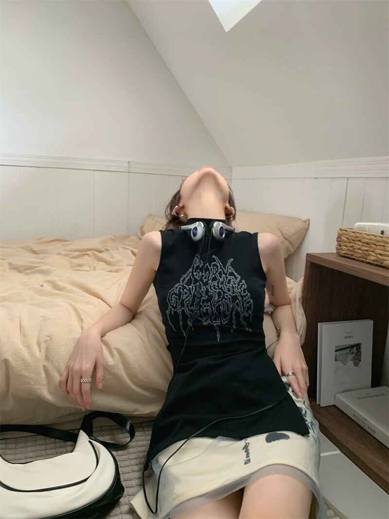 色:ハーフタートルネックブラックT,メッシュスカート