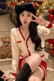フレンチスタイルの小さな香りvネックニットカーディガン婦人服2023春の新しいスタイルの気質ハイエンドセータージャケット スプリング 春物 0921958640992430