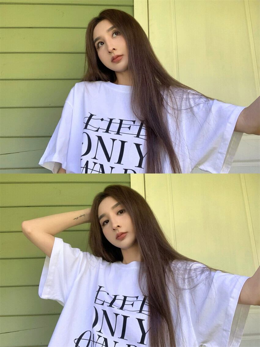 バージョンのオールマッチカラーレタープリント半袖Tシャツレディース2023年夏新作ミッドレングスルーズラウンドネックトップ サマー 夏物 Oネック 0921956568609387