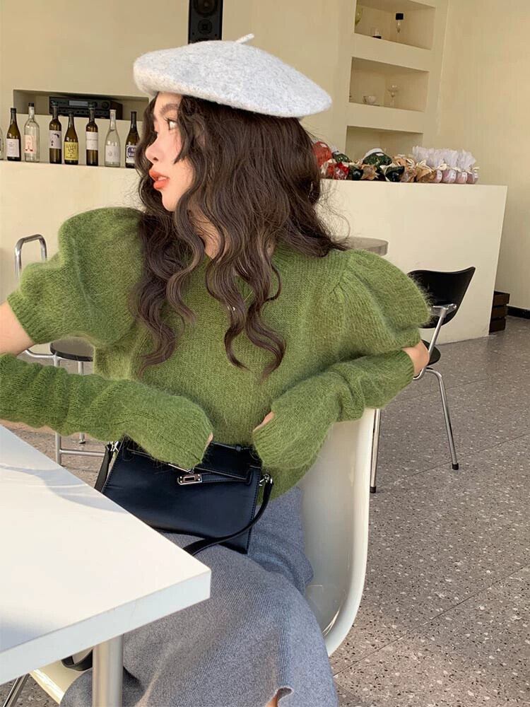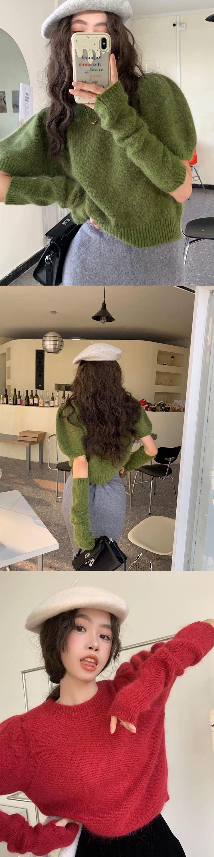 センスイミテーションモヘアスリーブニットウェアレディース春と秋 2023 新しいショートセクションスリムスリムボトムトップトレンド スプリング 春物 オータム 秋物 0921934826101450
