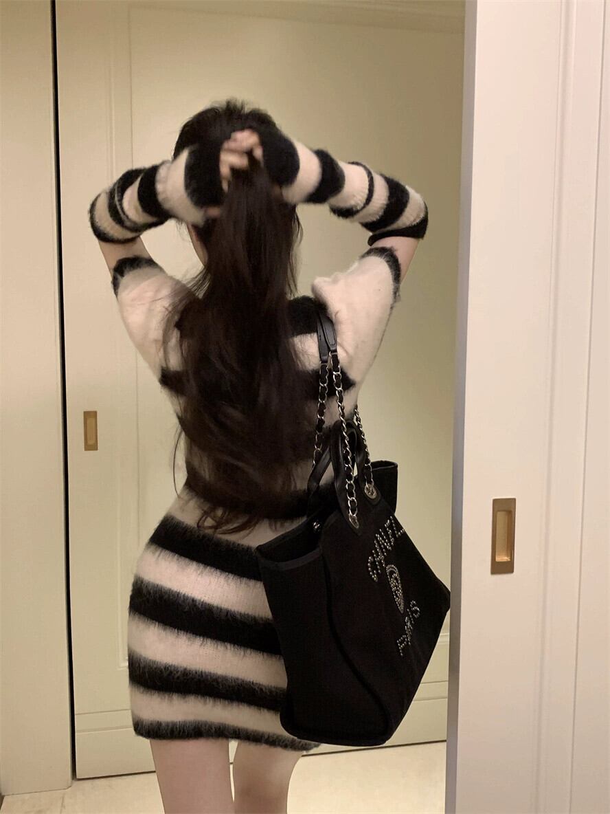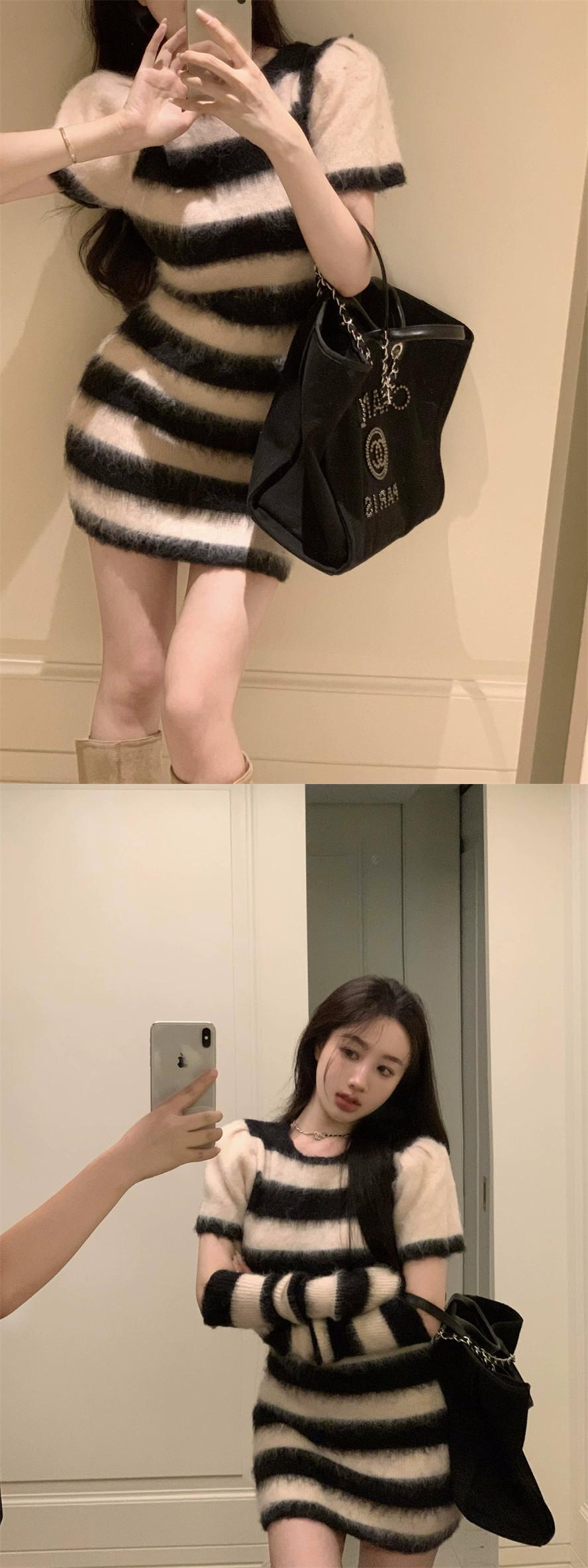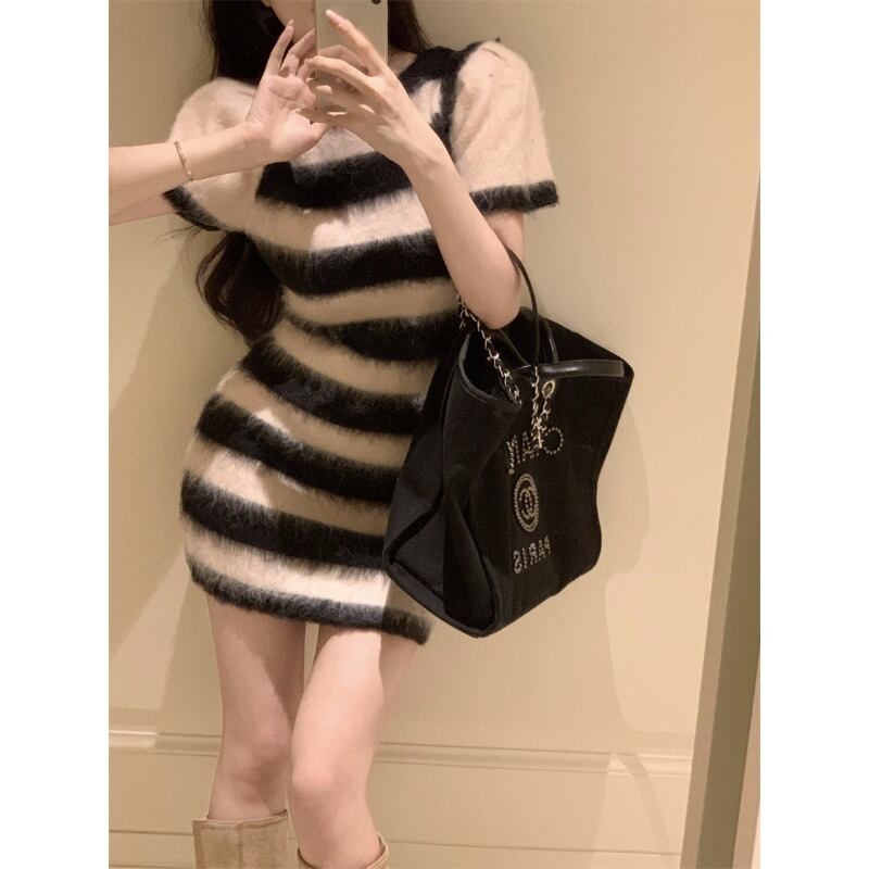 バージョンデザインセンスセータースリーブドレス女性 2023 春の新作スリムとスリムニット A ラインスカート潮 スプリング 春物 Aライン 0921976656924427